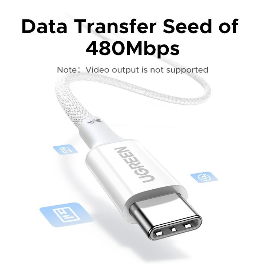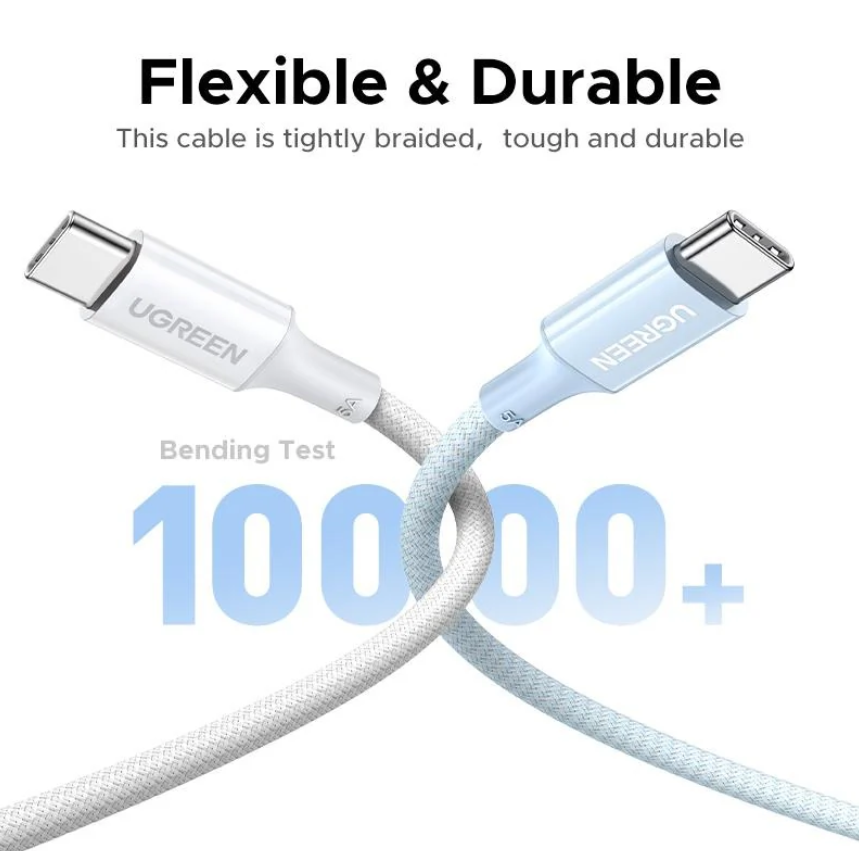 Особливості кабелю UGREEN L502 Type-C to Type-C 100W (5A, 2m):