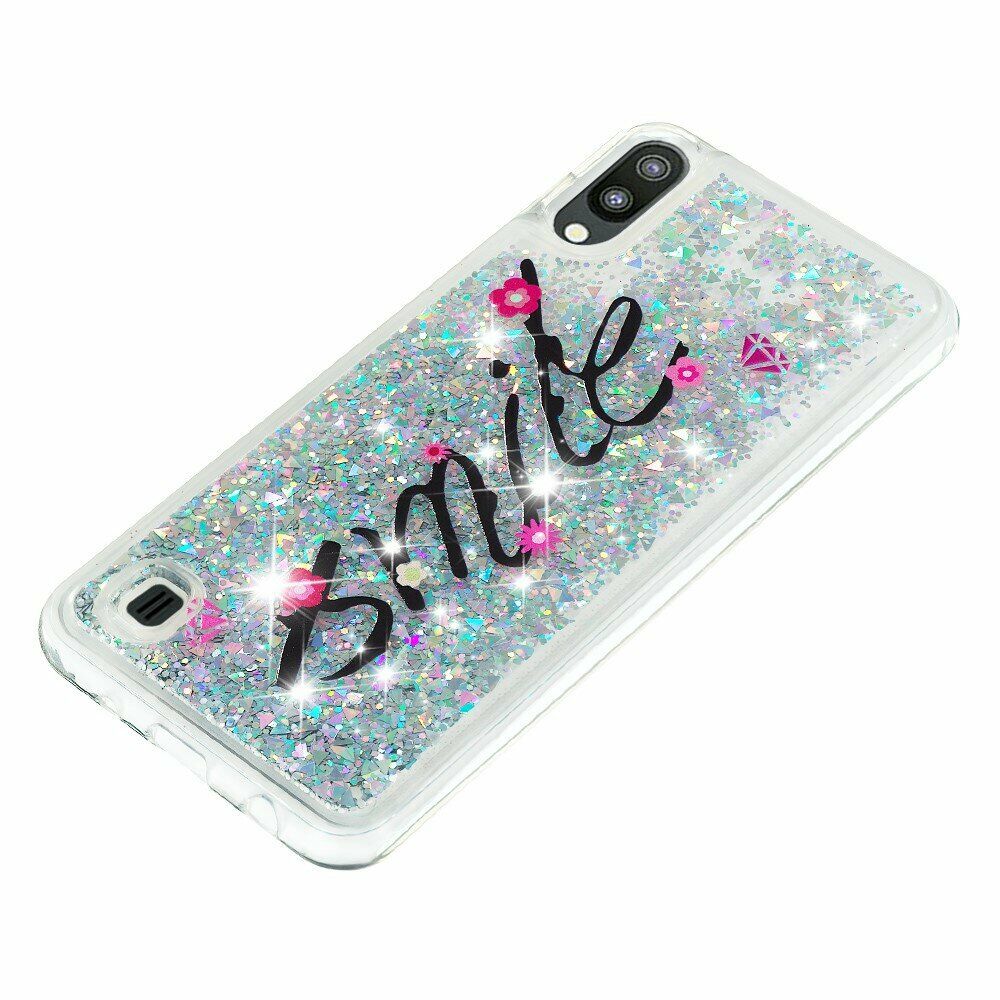 Силиконовый (TPU) чехол Deexe Liquid Glitter для Samsung Galaxy A10 (A105) - SMILE Pattern