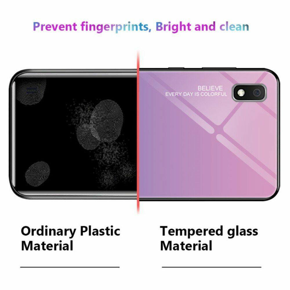 Чохол Deexe Gradient Color стане не тільки відмінним захисним рішенням для Samsung Galaxy A10 (A105), здатним убезпечити поверхні від бруду та пошкоджень, але й стильним іміджевим доповненням, що гармонійно поєднується з зовнішністю смартфона. Його конструкція складається з трьох компонентів: міцної полікарбонатної основи, силіконового (TPU) бампера по периметру і загартованого скла з візерунковим елементом. Поєднання трьох матеріалів різної жорсткості сприяє вищій зносостійкості та покращує амортизаційні властивості чохла. Легкий і тонкий, він мінімально обтяжує смартфон і візуально його практично не збільшує. Для апаратних роз'ємів і камери тут передбачені спеціальні вирізи, а для клавіш - м'які, чутливі до натискання дублікатори.