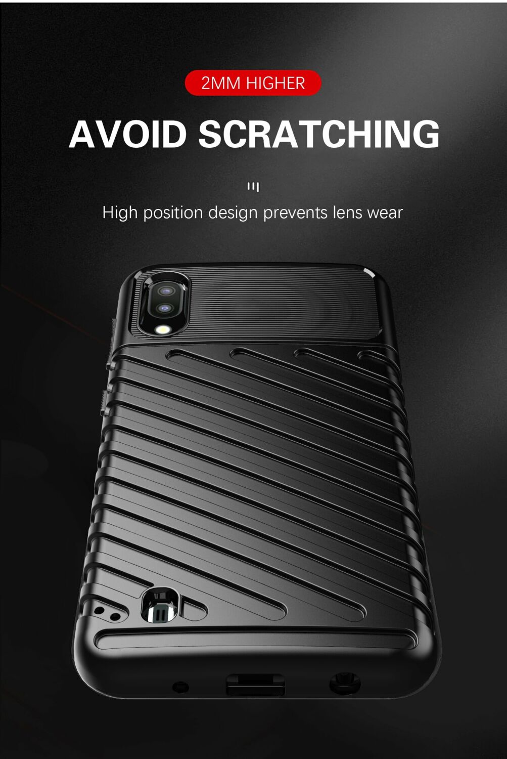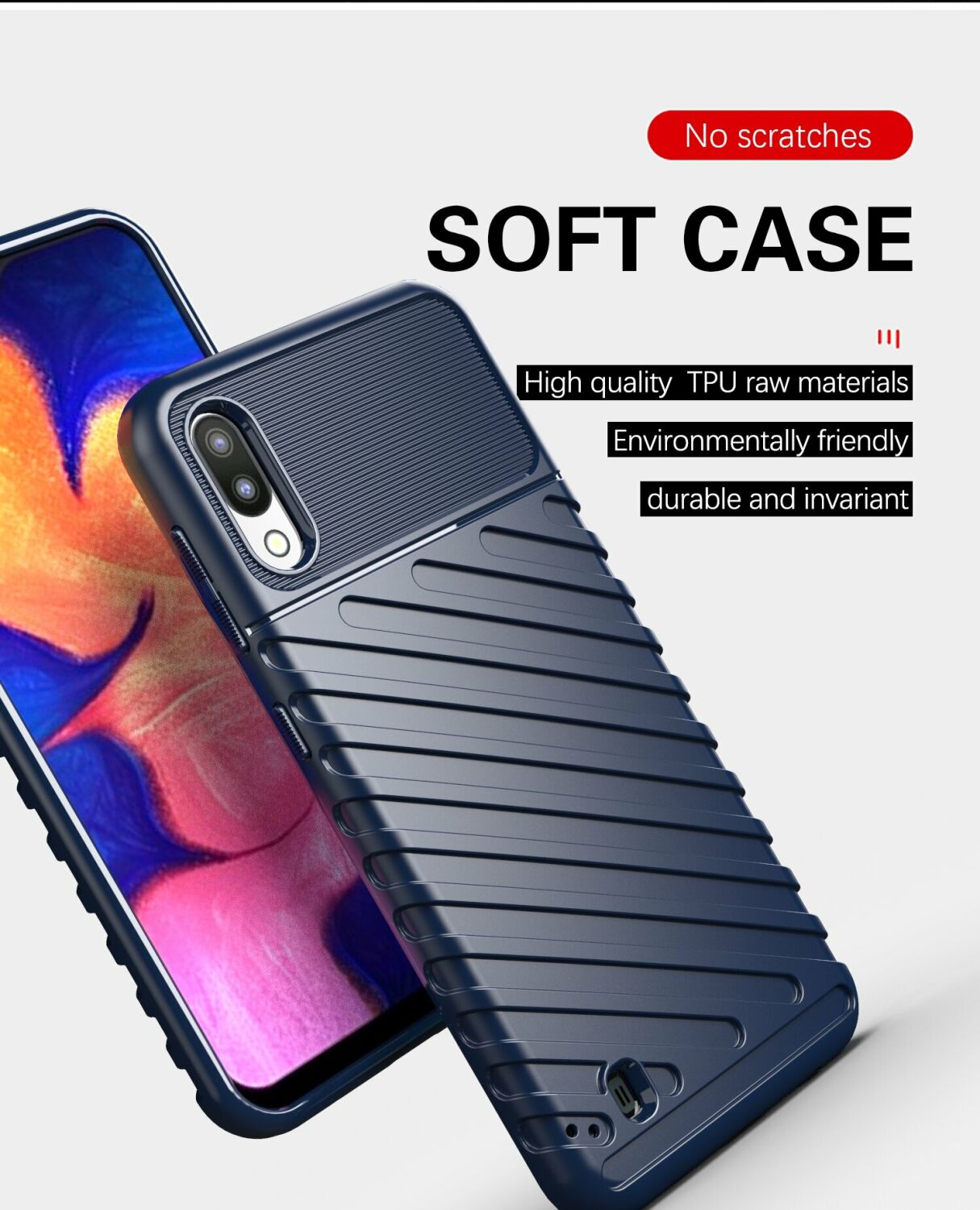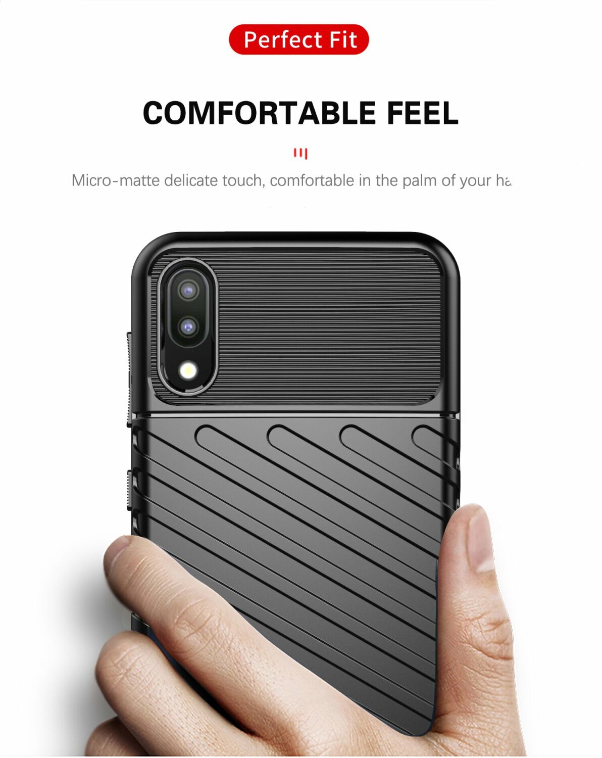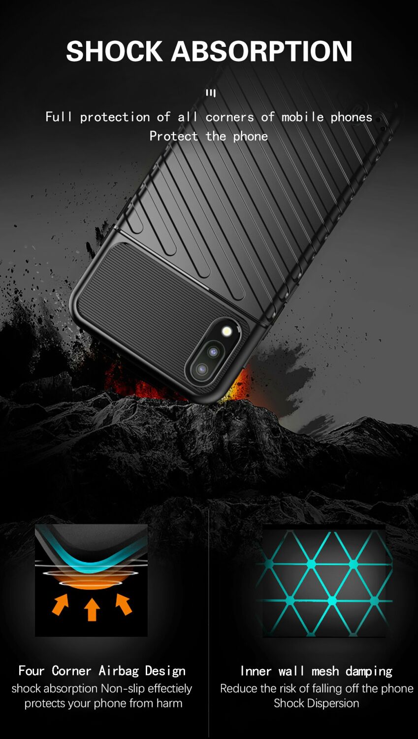 Чохол-накладка Deexe Thunder Series грамотно поєднує в собі компактні розміри, стильний сучасний дизайн і відмінні захисні властивості. Основним матеріалом тут виступає щільний термополіуретан (TPU), що довго не втрачає свій первозданний вигляд та здатний добре пом'якшити удар при падінні з висоти, оберігаючи корпус Samsung Galaxy A10 (A105) / M10 (M105) не тільки від подряпин, але й від тріщин. Чохол має спеціальну форму і рифлену фактуру поверхні, які не тільки додають оригінальності його зовнішньому вигляду, але й покращують хват в долоні. В конструкції передбачені необхідні отвори для камери та портів, клавіші ж прикриваються м'якими, чутливими до натиснення дублікаторами, тому використовувати смартфон буде так само зручно, як і раніше.