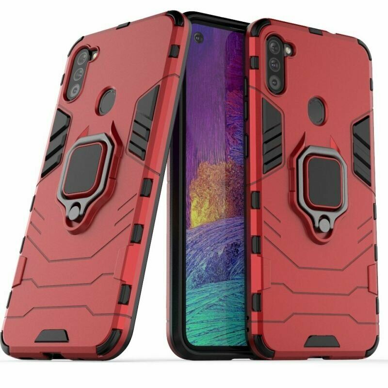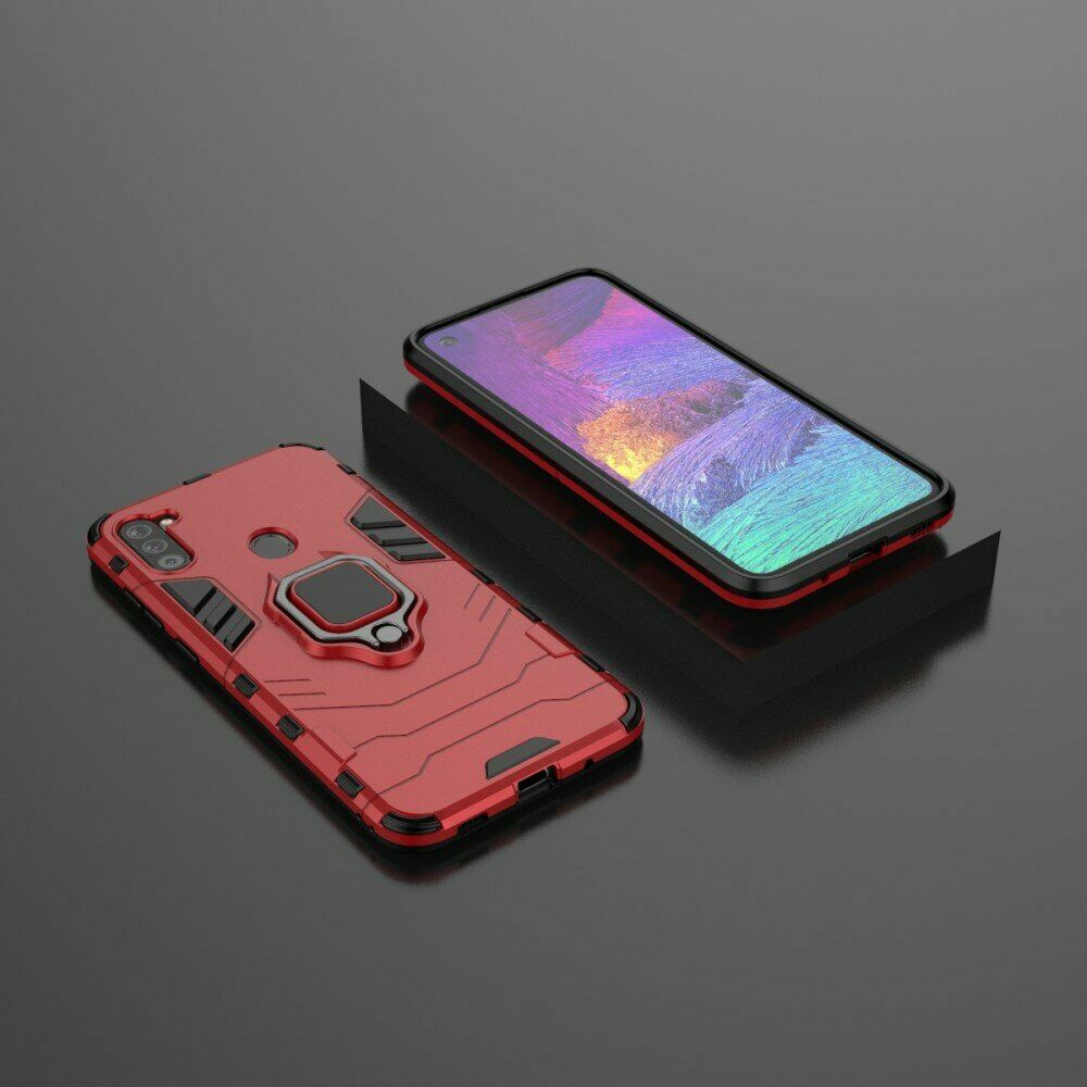 Чохол Deexe Hybrid Case - це оптимальне рішення для безпеки Samsung Galaxy A11 (A115). Він грамотно поєднує в собі високі захисні властивості, стильний сучасний дизайн і доступну вартість. Конструкція складається з комбінації міцного пластику та еластичного силікону (TPU), що зумовлює відмінні амортизаційні якості та дозволяє пом'якшувати удар в разі падіння на підлогу. Зовні чохол має приємну на дотик рифлену поверхню, яка перешкоджає ковзанню в руці та покрашує хват. Ззаду на спинці розміщено спеціальне кільце-тримач, за яке смартфон можна підвісити на пальці, а відкинувши - отримати зручну підставку.