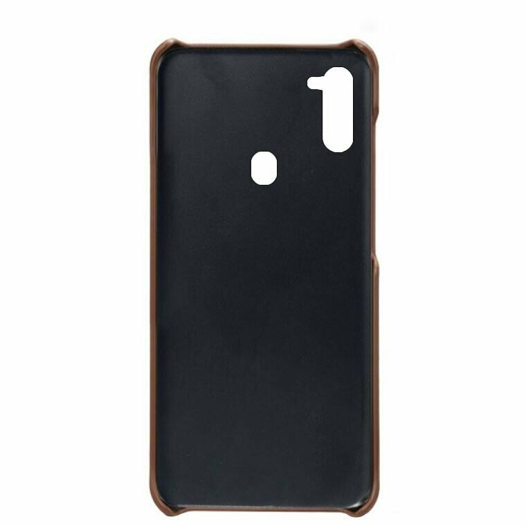 Чохол KSQ Pocket Case виконаний у форм-факторі накладки та відразу привертає увагу, завдяки акуратному дизайну, витриманому в класичних тонах, що відмінно поєднуються з Samsung Galaxy A11 (A115). Основним матеріалом тут виступає міцний полікарбонат, який стане справжньою бронею, оберігаючи корпус як від дрібних подряпин і потертостей, так і серйозних ударів, беручи на себе основну їх силу в разі падіння на підлогу, тим самим мінімізуючи вірогідність отримати скол або тріщину. Зовні його покриває щільний шар синтетичної шкіри, поверхня якої приємно лежить в руці та не зберігає на собі сліди від пальців. У конструкції враховане розміщення портів і клавіш, для яких передбачені спеціальні вирізи, що не перешкоджають вільному використанню. На додаток на спинці є 2 невеличкі кишеньки, в які можна ховати пластикові карти, візитки чи якісь інші дрібниці.