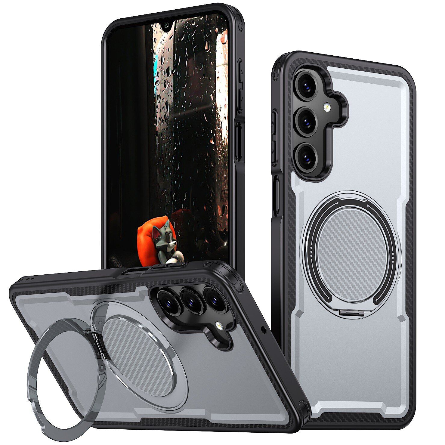 Захисний чохол з кільцем-підставкою Reframe Grip MagSafe розроблений для Samsung Galaxy A16 (A165) з урахуванням геометрії корпусу і розташування функціональних елементів. Конструкція виконана з комбінації TPU і полікарбонату, що допомагає зберегти форму виробу при щоденній експлуатації та знизити вплив ударних навантажень. Посилені кути сприяють рівномірному розподілу навантаження при падіннях і випадкових ударах, а в області модуля камери передбачений піднятий бортик висотою 1,5 мм, який знижує ризик контакту лінз з поверхнями. Вбудоване магнітне кільце забезпечує сумісність з магнітними зарядними пристроями, автомобільними тримачами та іншими аксесуарами. Форма виробу передбачає точні вирізи для роз'ємів і динаміків, а також окремі накладки на бічні клавіші для збереження звичного відгуку. Металеве кільце-підставка з поворотом на 360° дозволяє зручно розмістити смартфон для перегляду контенту або відеозв'язку.