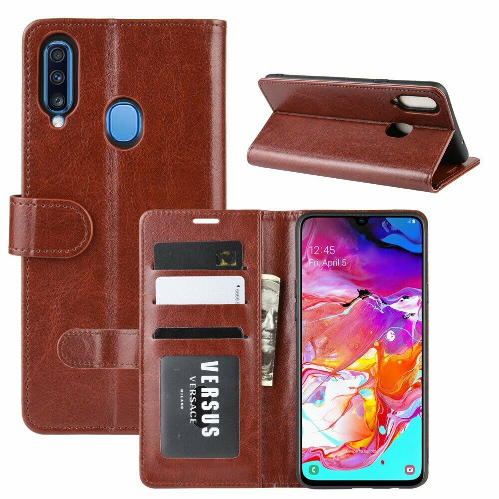 Чохол-книжка Deexe Wallet Style виконаний відповідно до форми та розмірів Samsung Galaxy A20s (A207) і щільно на ньому фіксується, захищаючи поверхні апарату від бруду та пошкоджень. В якості основного матеріалу тут виступає синтетична шкіра, доповнює конструкцію термополіуретановий (TPU) тримач, що фіксує смартфон всередині та забезпечує протиударний ефект.