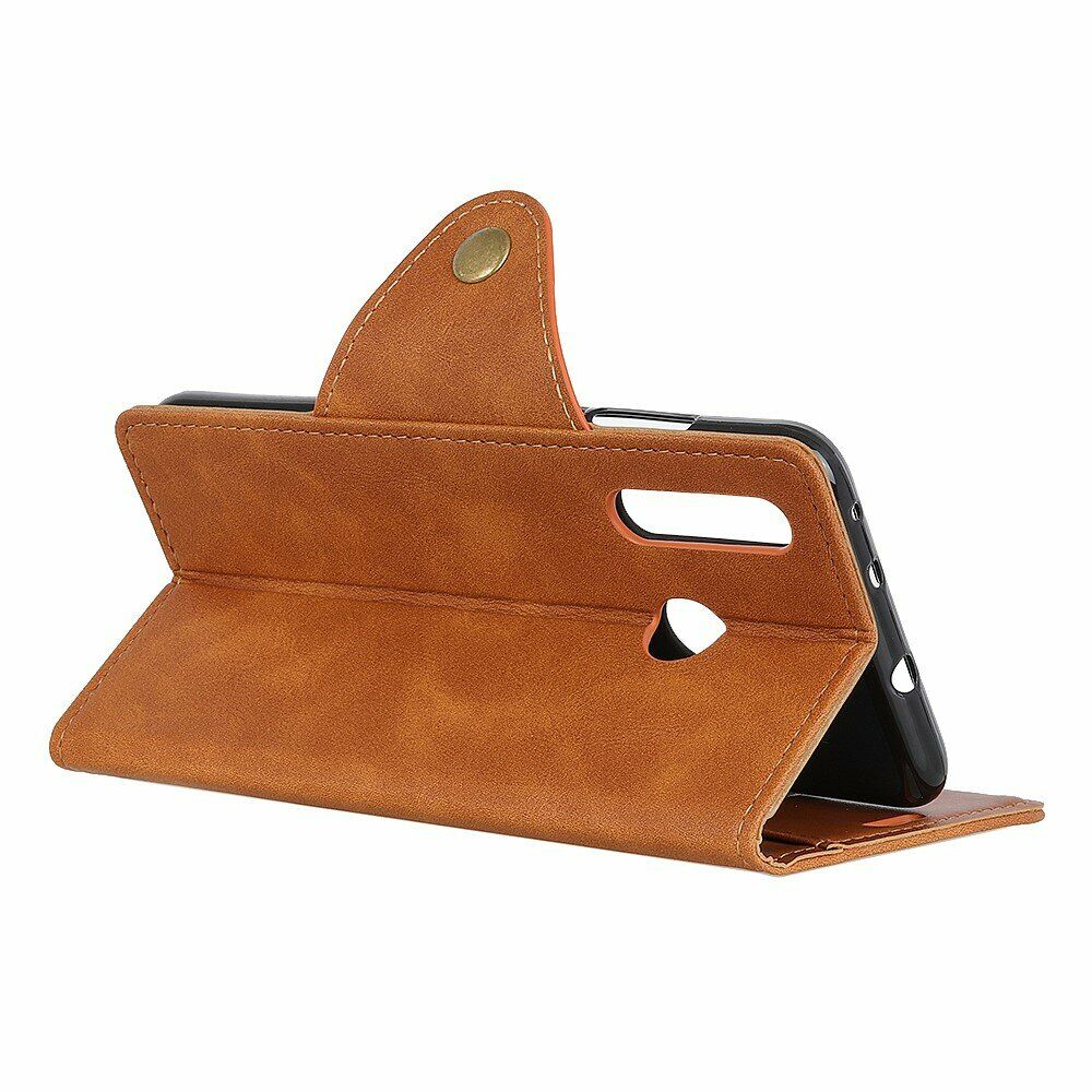 UniCase Vintage Wallet - це надійний захисний чохол для Samsung Galaxy A20s (A207) в елегантному вінтажному дизайні, що дозволяє захистити поверхні смартфона, анітрохи не зменшуючи його привабливості. В якості основного матеріалу використана синтетична шкіра, що приємна на дотик і не зберігає відбитки. Основа-тримач виготовлена зі щільного термополіуретану (TPU), хороші амортизаційні характеристики якого дозволяють суттєво пом'якшувати удар у випадку падіння з висоти.