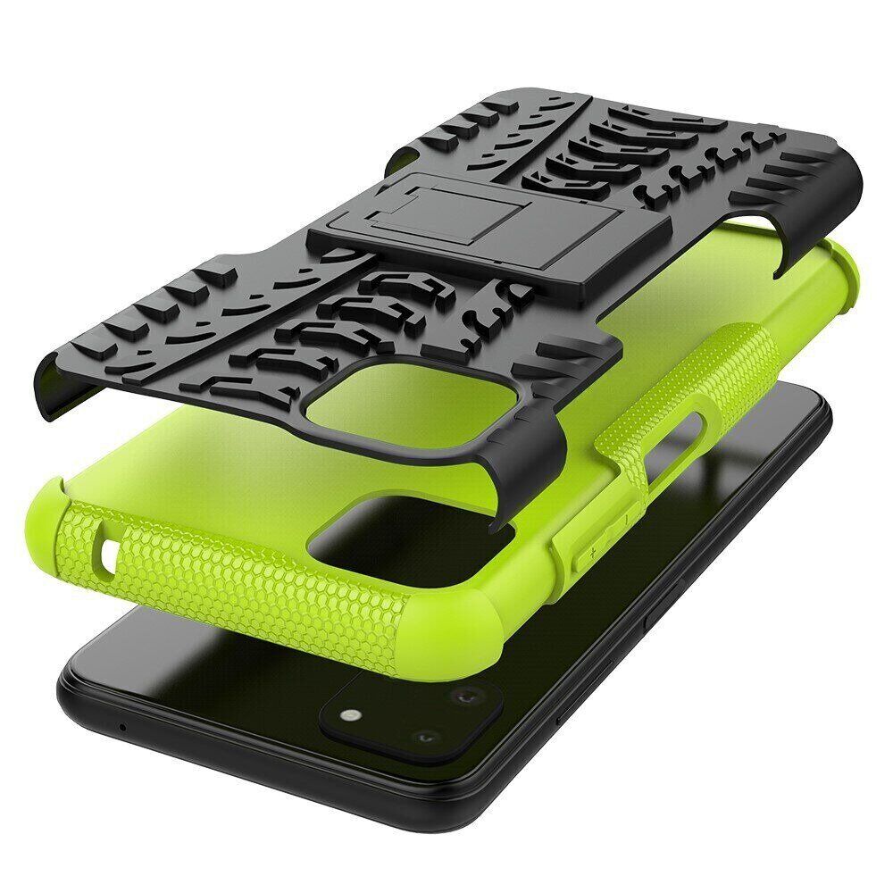 UniCase Hybrid X - це один з найнадійніших аксесуарів для Samsung Galaxy A22 5G (A226). Чохол складається з 2-х компонентів: щільної силіконової (TPU) накладки і міцного полікарбонатного панцира навколо неї. Завдяки такій конструкції, корпусу смартфона гарантується практично повна безпека при падіннях і сильних ударах. Зовнішня поверхня має спеціальну рифлену фактуру, яка не збирає на собі відбитки і покращує хват у руці. Виробник передбачив всі необхідні отвори для доступу до портів і камери смартфона, а також м'які пилозахисні дублікатори для клавіш. Також на спинці є невелика ніжка, відкинувши яку, чохол можна перетворити в зручну підставку, що полегшує перегляд відео і читання з екрану.