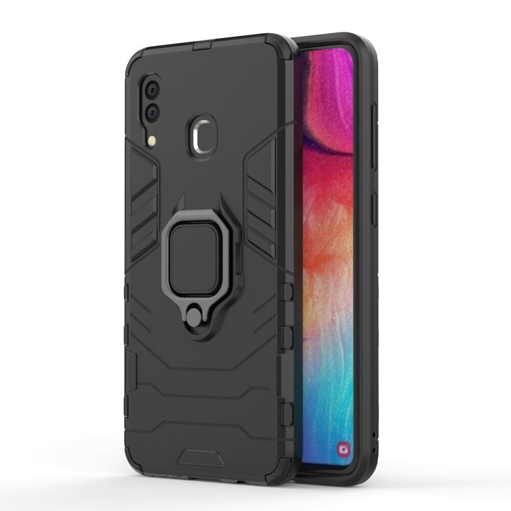 Чохол Deexe Hybrid Case - це оптимальне рішення для безпеки Samsung Galaxy A30 (A305) / A20 (A205). Він грамотно поєднує в собі високі захисні властивості, стильний сучасний дизайн і доступну вартість. Конструкція складається з комбінації міцного пластику та еластичного силікону (TPU), що зумовлює відмінні амортизаційні якості та дозволяє пом'якшувати удар в разі падіння на підлогу. Зовні чохол має приємну на дотик рифлену поверхню, яка перешкоджає ковзанню в руці та покрашує хват. Ззаду на спинці розміщено спеціальне кільце-тримач, за яке смартфон можна підвісити на пальці, а відкинувши - отримати зручну підставку.