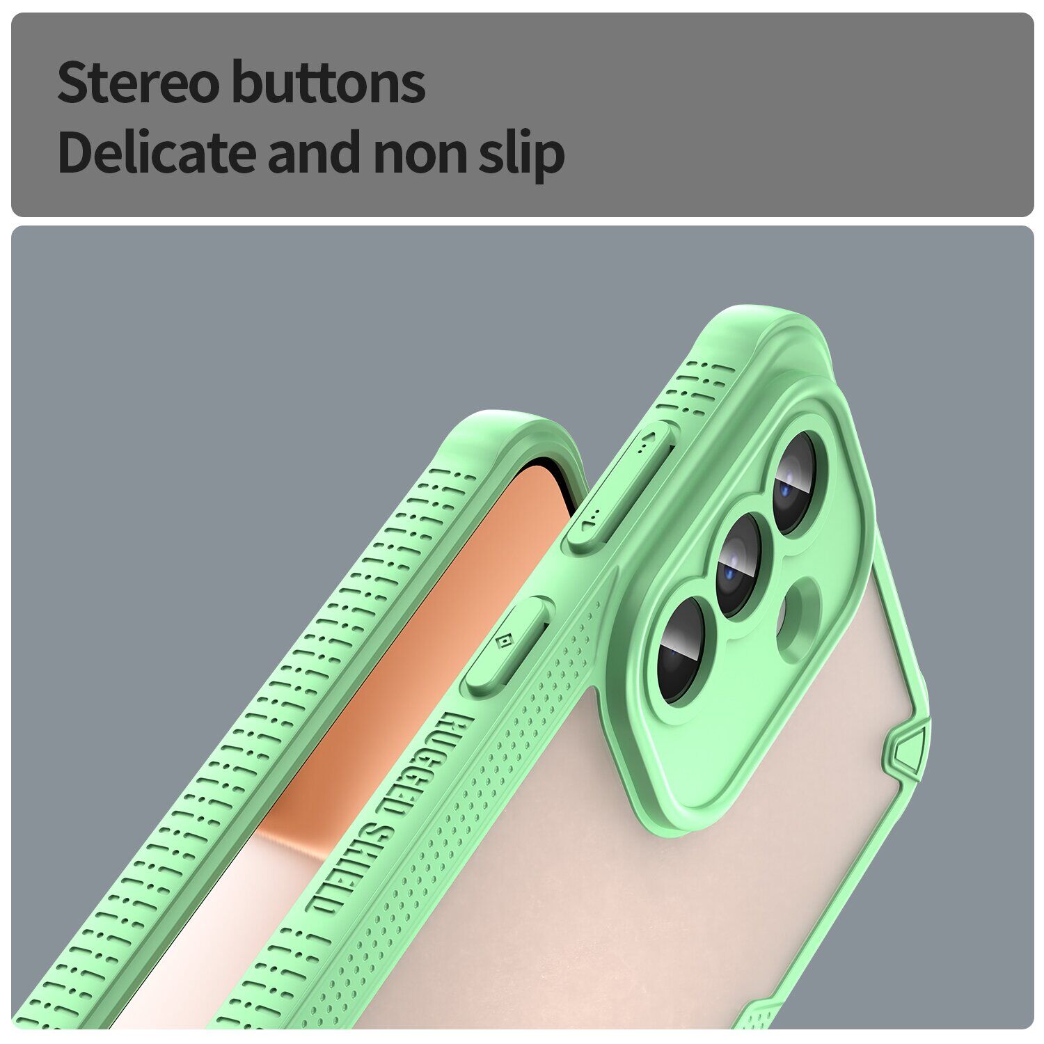 Чохол Falcon Frame від UniCase стане практичним і функціональним захисним рішенням для Samsung Galaxy A57 (A576). Він виконаний з комбінації міцного полікарбонату та еластичного силікону (TPU), що разом забезпечують гармонійне співвідношення жорсткості/м'якості, покращуючи амортизаційні якості аксесуара. Напівпрозора спинка надасть смартфону цікавий і привабливий вигляд, а її матова фактура не збиратиме на собі відбитки. Кути чохла додатково посилені за технологією «повітряної подушки», дозволяючи суттєво знизити ймовірність пошкоджень при найнебезпечніших видах падінь – ребром або на кут. Ергономічна форма та рифлені боковини роблять хват у долоні впевненішим, запобігаючи випадковому вислизанню з рук. Для всіх функціональних роз'ємів і камери смартфона виробником передбачені необхідні отвори, тоді як клавіші будуть прикриті м'якими пилозахисними дублікаторами.