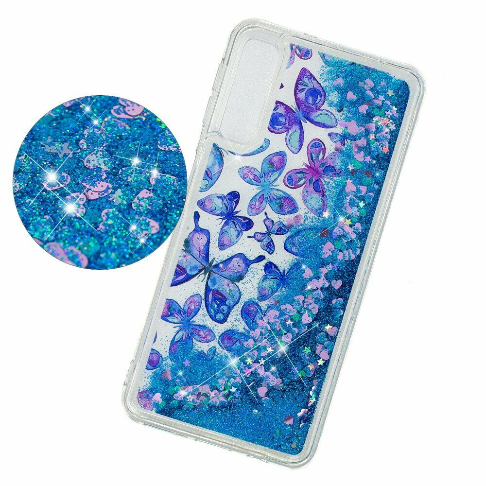 Силіконовий (TPU) чохол Deexe Liquid Glitter для Samsung Galaxy A70 (A705), Blue Butterflies Силіконовий (TPU) чохол Deexe Liquid Glitter для Samsung Galaxy A70 (A705) - Purple Feather and Birds