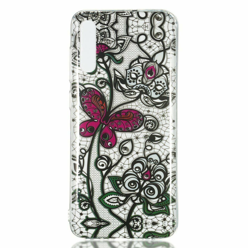 Силиконовый (TPU) чехол Deexe Pretty Glossy для Samsung Galaxy A70 (A705) - Black Lace and Butterfly