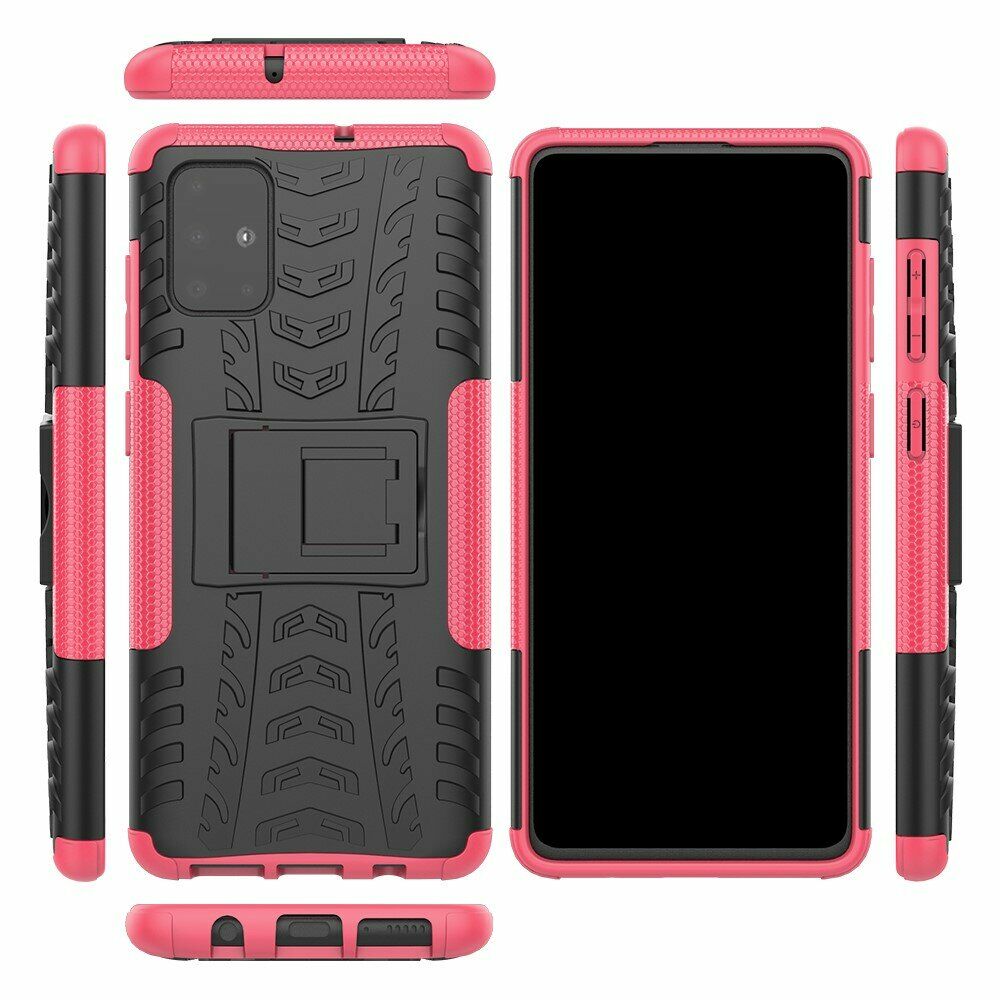 UniCase Hybrid X - це один з найнадійніших аксесуарів для Samsung Galaxy A71 (A715). Чохол складається з 2-х компонентів: щільної силіконової (TPU) накладки і міцного полікарбонатного панцира навколо неї. Завдяки такій конструкції, корпусу смартфона гарантується практично повна безпека при падіннях і сильних ударах. Зовнішня поверхня має спеціальну рифлену фактуру, яка не збирає на собі відбитки і покращує хват у руці. Виробник передбачив всі необхідні отвори для доступу до портів і камери смартфона, а також м'які пилозахисні дублікатори для клавіш. Також на спинці є невелика ніжка, відкинувши яку, чохол можна перетворити в зручну підставку, що полегшує перегляд відео і читання з екрану.