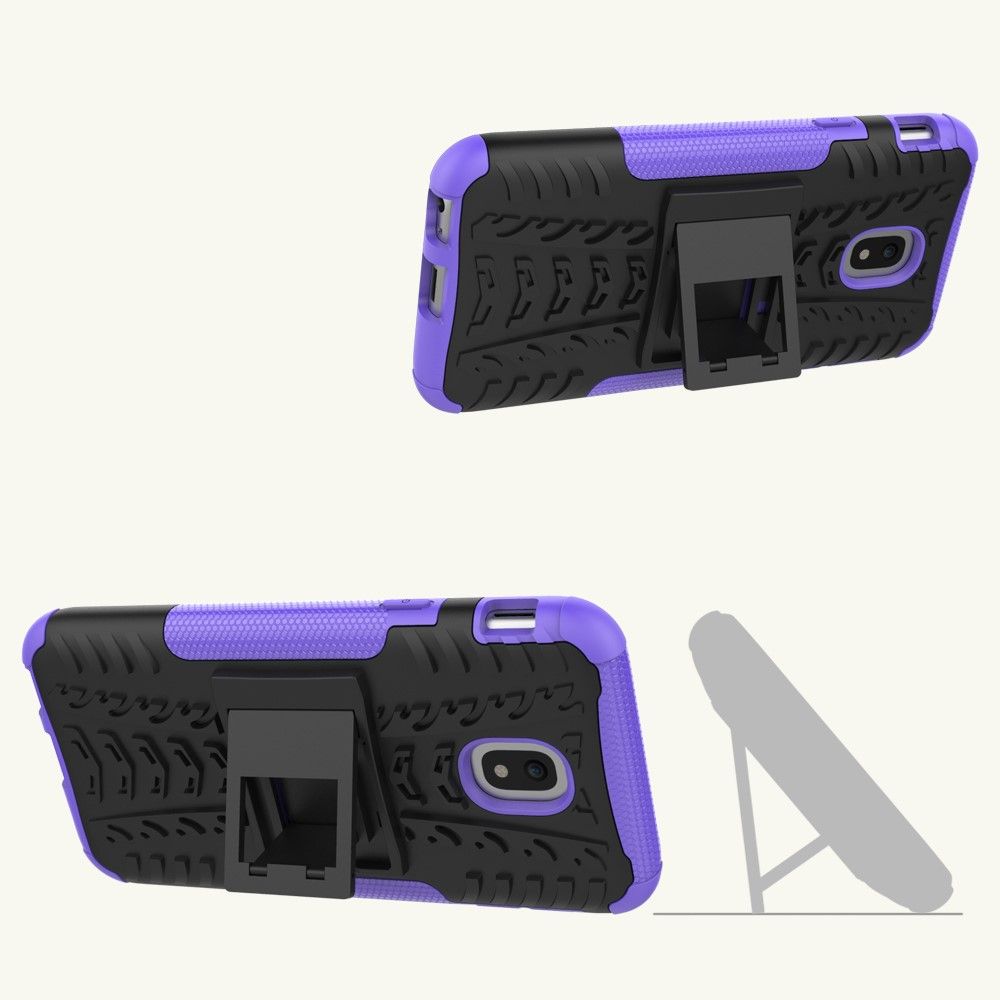 UniCase Hybrid X - це один з найнадійніших аксесуарів для Samsung Galaxy J3 2017 (J330). Чохол складається з 2-х компонентів: щільної силіконової (TPU) накладки і міцного полікарбонатного панцира навколо неї. Завдяки такій конструкції, корпусу смартфона гарантується практично повна безпека при падіннях і сильних ударах. Зовнішня поверхня має спеціальну рифлену фактуру, яка не збирає на собі відбитки і покращує хват у руці. Виробник передбачив всі необхідні отвори для доступу до портів і камери смартфона, а також м'які пилозахисні дублікатори для клавіш. Також на спинці є невелика ніжка, відкинувши яку, чохол можна перетворити в зручну підставку, що полегшує перегляд відео і читання з екрану.