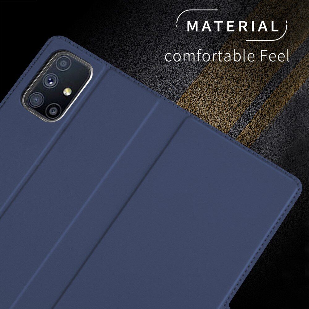 Чохол UniCase Business Wallet виконаний у форм-факторі "книжка" і повністю покриває поверхні Samsung Galaxy M51 (M515), забезпечуючи всебічний захист від бруду та пошкоджень. Його конструкція складається з двох елементів: щільного силіконового тримача, який добре пом'якшує падіння з висоти, і обкладинки з текстурованого поліуретану, поверхня якої не зберігає відбитки та не ковзає в долоні. На внутрішній поверхні є спеціальна кишенька для пластикової карти, а магнітна клямка кришки забезпечить надійну фіксацію в закритому положенні. При необхідності, кришку можна скласти в стійку підставку для смартфона, істотно підвищуючи зручність перегляду відео або читання з екрана.