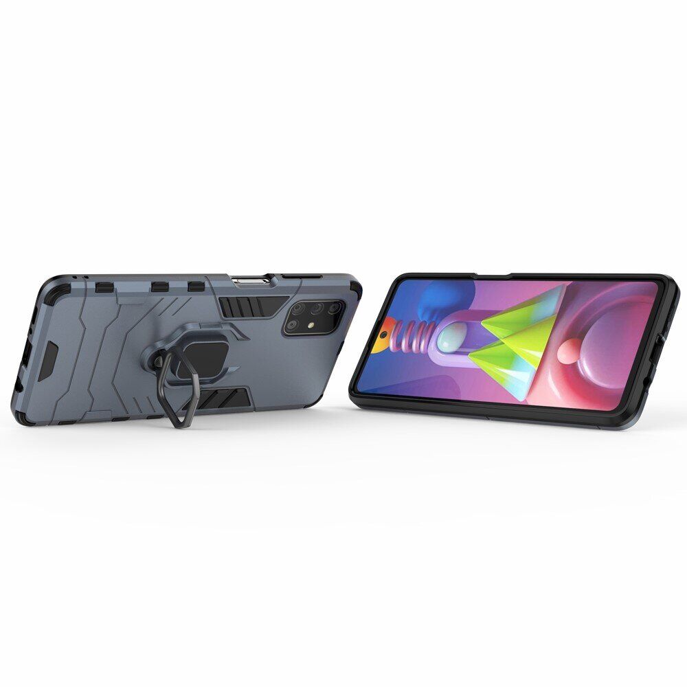 Чохол Deexe Hybrid Case - це оптимальне рішення для безпеки Samsung Galaxy M51 (M515). Він грамотно поєднує в собі високі захисні властивості, стильний сучасний дизайн і доступну вартість. Конструкція складається з комбінації міцного пластику та еластичного силікону (TPU), що зумовлює відмінні амортизаційні якості та дозволяє пом'якшувати удар в разі падіння на підлогу. Зовні чохол має приємну на дотик рифлену поверхню, яка перешкоджає ковзанню в руці та покрашує хват. Ззаду на спинці розміщено спеціальне кільце-тримач, за яке смартфон можна підвісити на пальці, а відкинувши - отримати зручну підставку.