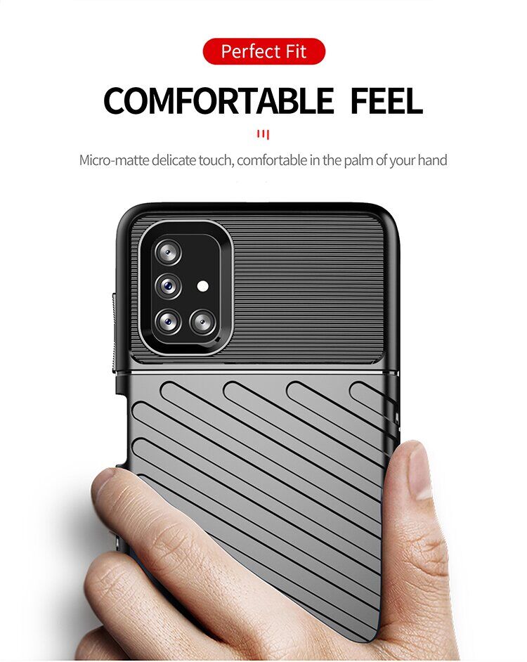 Чохол-накладка Deexe Thunder Series грамотно поєднує в собі компактні розміри, стильний сучасний дизайн і відмінні захисні властивості. Основним матеріалом тут виступає щільний термополіуретан (TPU), що довго не втрачає свій первозданний вигляд та здатний добре пом'якшити удар при падінні з висоти, оберігаючи корпус Samsung Galaxy M51 (M515) не тільки від подряпин, але й від тріщин. Чохол має спеціальну форму і рифлену фактуру поверхні, які не тільки додають оригінальності його зовнішньому вигляду, але й покращують хват в долоні. В конструкції передбачені необхідні отвори для камери та портів, клавіші ж прикриваються м'якими, чутливими до натиснення дублікаторами, тому використовувати смартфон буде так само зручно, як і раніше.