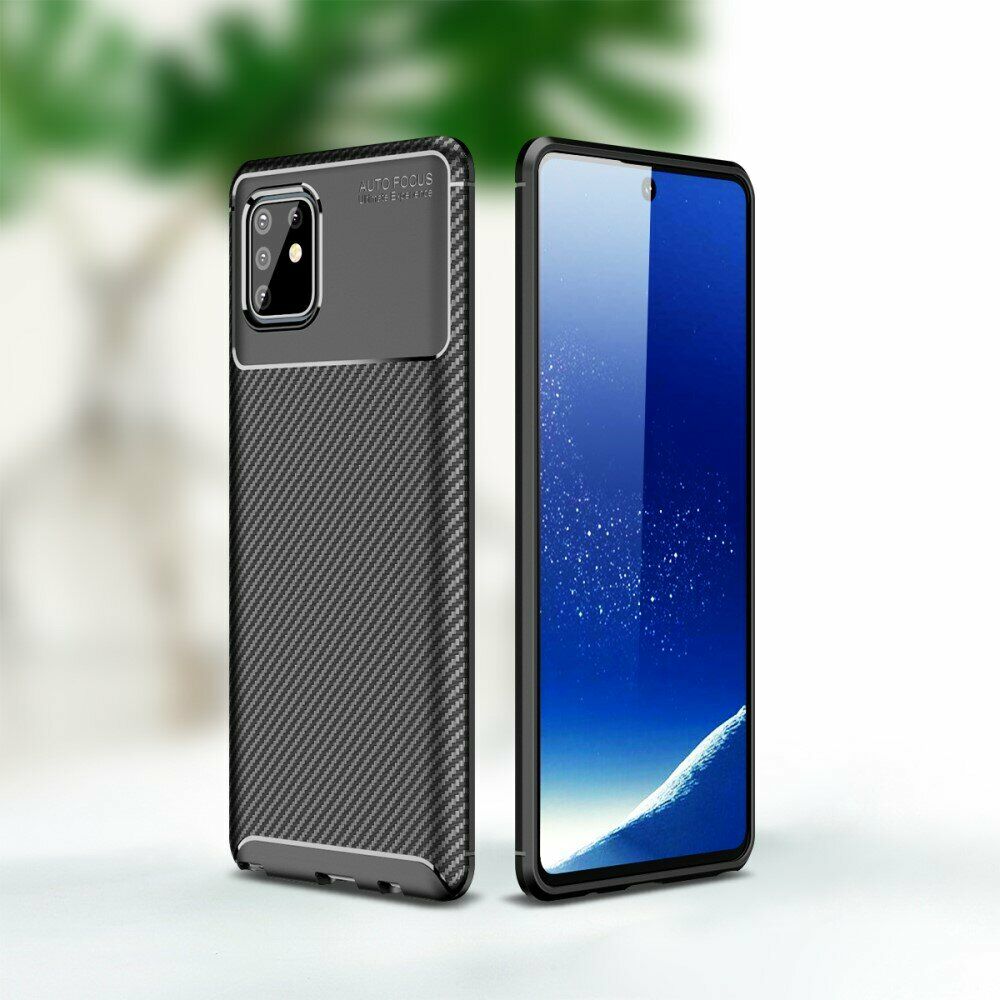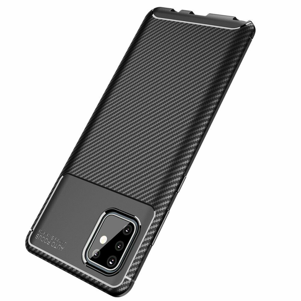 Чохол-накладка Deexe Fusion - це відмінне поєднання високих захисних характеристик, стильного дизайну і доступної ціни. Він виготовлений точно за формою і розмірами корпусу Samsung Galaxy Note 10 Lite (N770), щільно на ньому фіксується і стане гарантією збереження поверхонь в процесі щоденного використання. Основним матеріалом тут виступає щільний силікон (TPU), хороші амортизаційні якості якого дозволяють істотно пом'якшувати силу удару в разі падіння на підлогу, мінімізуючи пошкодження. Зовнішня поверхня має ефектну карбонову фактуру, що не тільки стильно виглядає, але й приємна на дотик і не зберігає на собі відбитки.