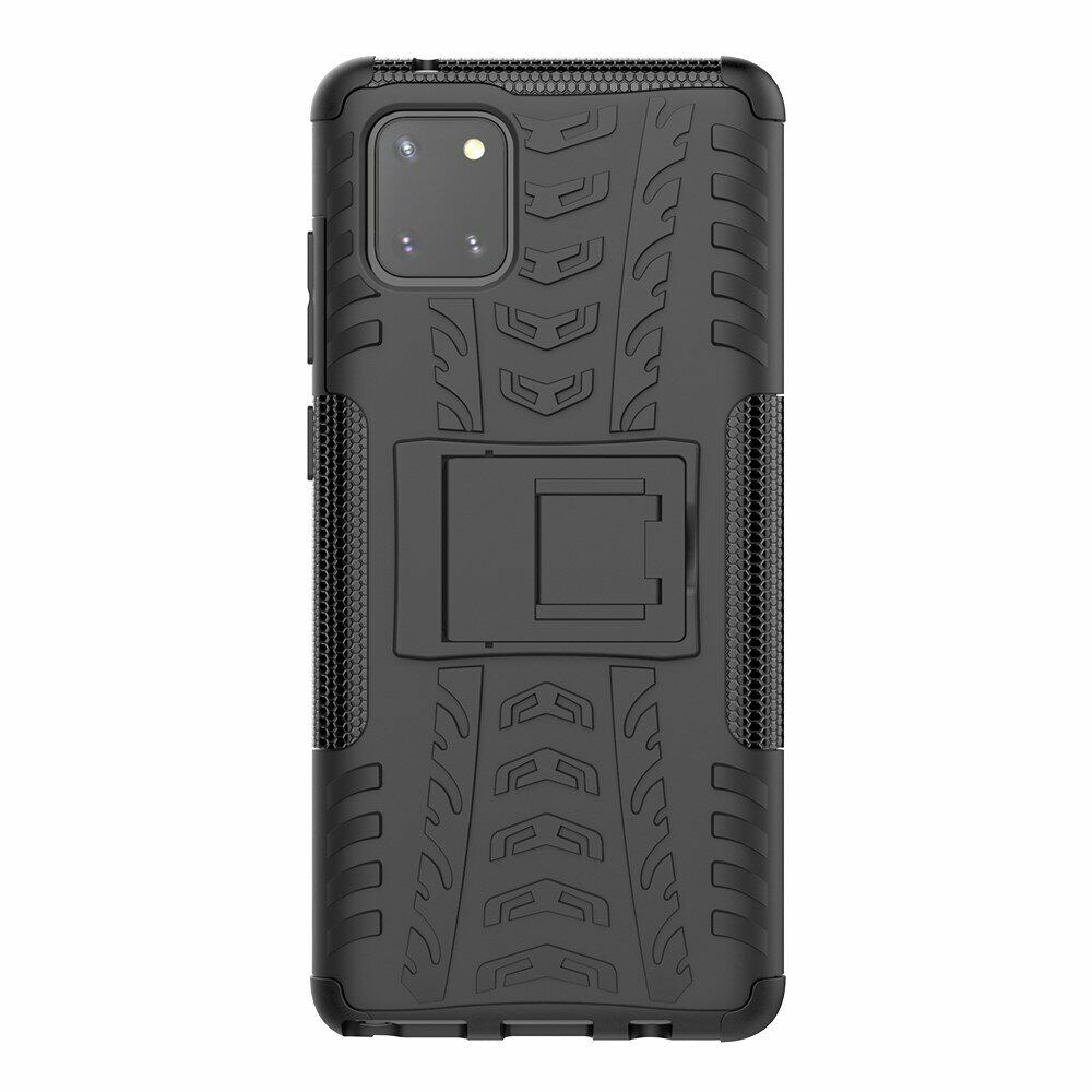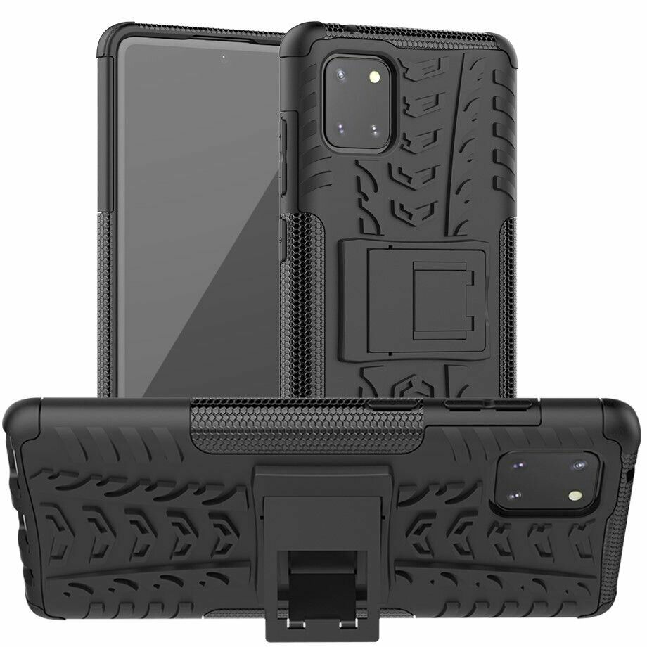 UniCase Hybrid X - це один з найнадійніших аксесуарів для Samsung Galaxy Note 10 Lite (N770). Чохол складається з 2-х компонентів: щільної силіконової (TPU) накладки і міцного полікарбонатного панцира навколо неї. Завдяки такій конструкції, корпусу смартфона гарантується практично повна безпека при падіннях і сильних ударах. Зовнішня поверхня має спеціальну рифлену фактуру, яка не збирає на собі відбитки і покращує хват у руці. Виробник передбачив всі необхідні отвори для доступу до портів і камери смартфона, а також м'які пилозахисні дублікатори для клавіш. Також на спинці є невелика ніжка, відкинувши яку, чохол можна перетворити в зручну підставку, що полегшує перегляд відео і читання з екрану.