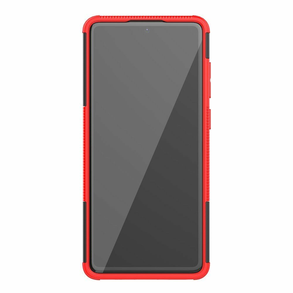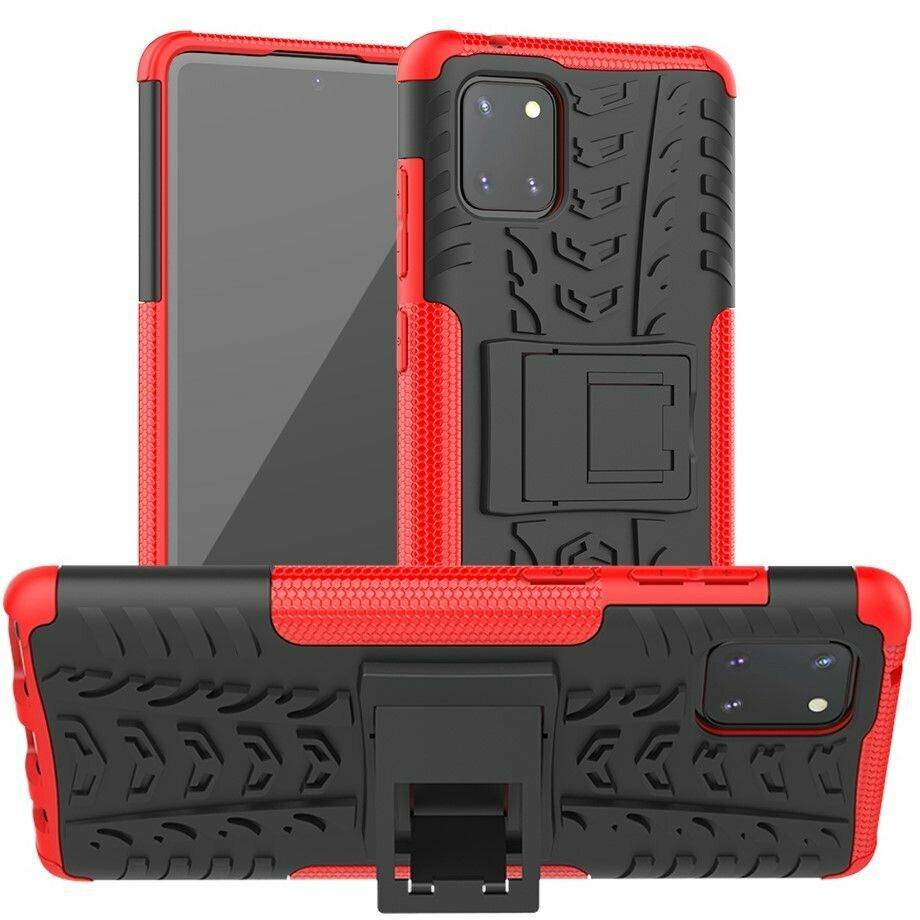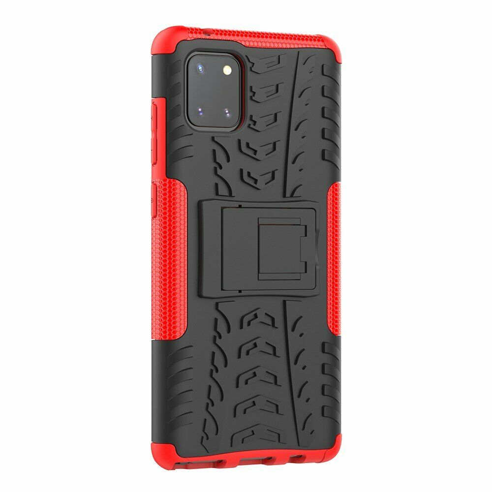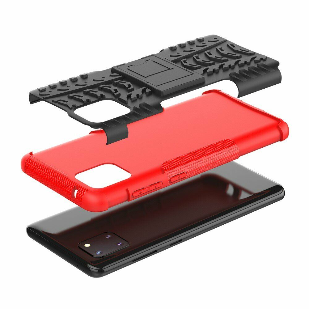 UniCase Hybrid X - це один з найнадійніших аксесуарів для Samsung Galaxy Note 10 Lite (N770). Чохол складається з 2-х компонентів: щільної силіконової (TPU) накладки і міцного полікарбонатного панцира навколо неї. Завдяки такій конструкції, корпусу смартфона гарантується практично повна безпека при падіннях і сильних ударах. Зовнішня поверхня має спеціальну рифлену фактуру, яка не збирає на собі відбитки і покращує хват у руці. Виробник передбачив всі необхідні отвори для доступу до портів і камери смартфона, а також м'які пилозахисні дублікатори для клавіш. Також на спинці є невелика ніжка, відкинувши яку, чохол можна перетворити в зручну підставку, що полегшує перегляд відео і читання з екрану.