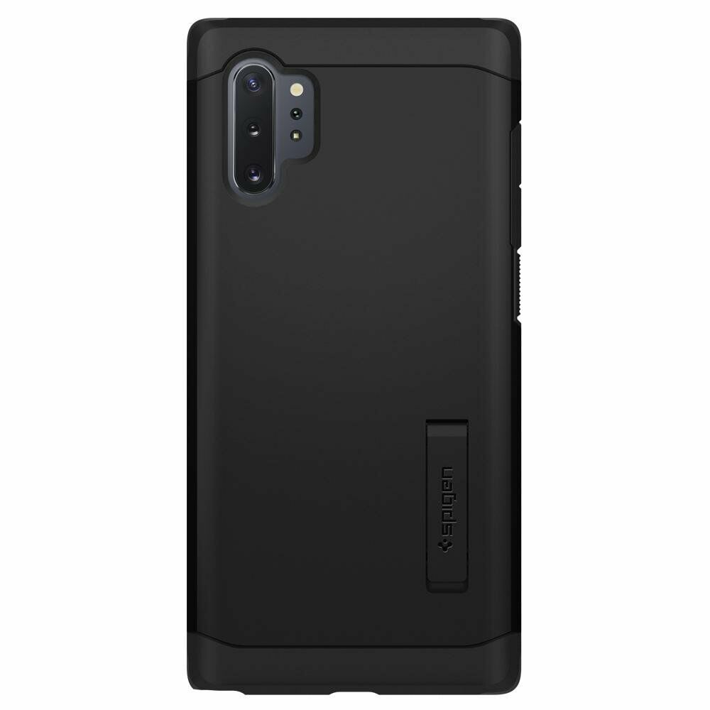 Чохол Spigen SGP Tough Armor - це надійний захист корпусу Samsung Galaxy Note 10+ (N975) від бруду, подряпин, потертостей та інших неприємностей, що залишають свої відмітини в процесі експлуатації. Його конструкція складається з еластичної силіконової (TPU) накладки та міцного полікарбонатного панцира - таке поєднання з двох матеріалів різної жорсткості сприяє більш високій зносостійкості та покращує амортизацію ударів. Фактура зовнішнього покриття приємна на дотик і не зберігає на собі відбитки. На спинці є спеціальний упор, відкинувши який, чохол можна використовувати як підставку для більш зручного перегляду відео або читання з екрана.