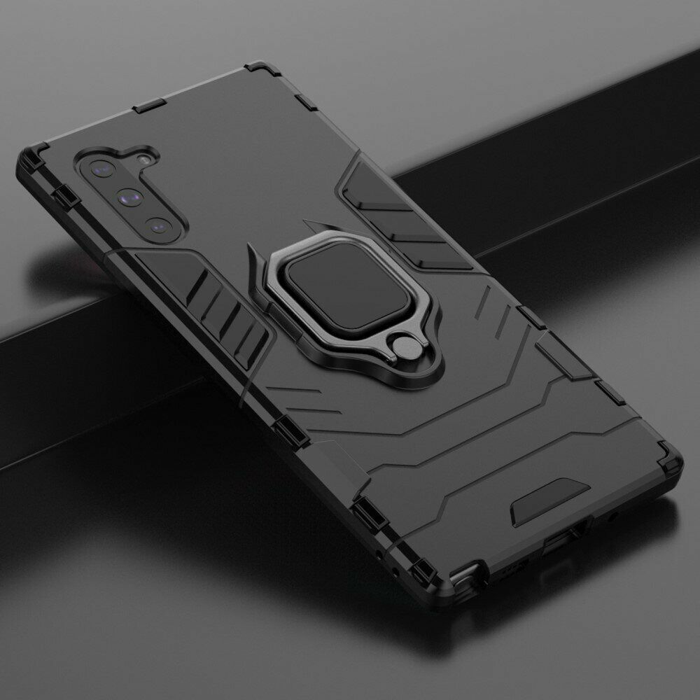 Чохол Deexe Hybrid Case - це оптимальне рішення для безпеки Samsung Galaxy Note 10 (N970). Він грамотно поєднує в собі високі захисні властивості, стильний сучасний дизайн і доступну вартість. Конструкція складається з комбінації міцного пластику та еластичного силікону (TPU), що зумовлює відмінні амортизаційні якості та дозволяє пом'якшувати удар в разі падіння на підлогу. Зовні чохол має приємну на дотик рифлену поверхню, яка перешкоджає ковзанню в руці та покрашує хват. Ззаду на спинці розміщено спеціальне кільце-тримач, за яке смартфон можна підвісити на пальці, а відкинувши - отримати зручну підставку.