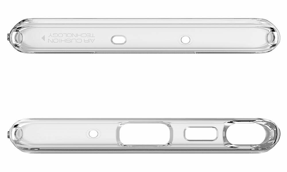 Spigen (SGP) Ultra Hybrid - це чохол преміум-класу від всесвітньо відомої компанії, який надійно захистить поверхні Samsung Galaxy Note 10 (N970) від бруду і різноманітних механічних пошкоджень, що лишають свої відмітини в процесі експлуатації. Його конструкция передбачає двоскладове компонування, де на прозорий пластиковий каркас зверху надітий еластичний силіконовий бампер - така комбінація двох матеріалів різної жорсткості істотно підвищує амортизаційні властивості виробу, дозволяючи "гасити" силу удару в разі падіння на підлогу. Крім цього, силіконові елементи покращують тактильні відчуття і перешкоджають ковзанню в долоні, знижуючи ймовірність впустити смартфон з рук.