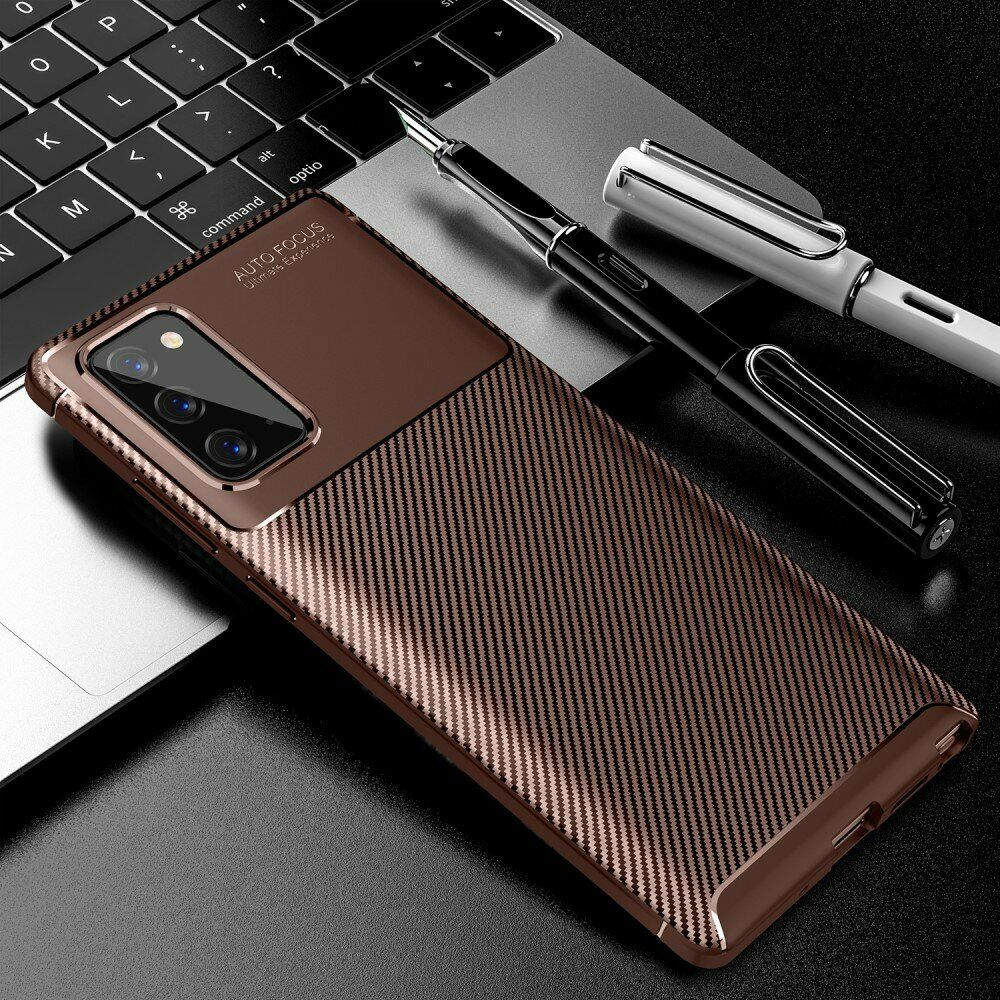 Чохол-накладка Deexe Fusion - це відмінне поєднання високих захисних характеристик, стильного дизайну і доступної ціни. Він виготовлений точно за формою і розмірами корпусу Samsung Galaxy Note 20 (N980), щільно на ньому фіксується і стане гарантією збереження поверхонь в процесі щоденного використання. Основним матеріалом тут виступає щільний силікон (TPU), хороші амортизаційні якості якого дозволяють істотно пом'якшувати силу удару в разі падіння на підлогу, мінімізуючи пошкодження. Зовнішня поверхня має ефектну карбонову фактуру, що не тільки стильно виглядає, але й приємна на дотик і не зберігає на собі відбитки.