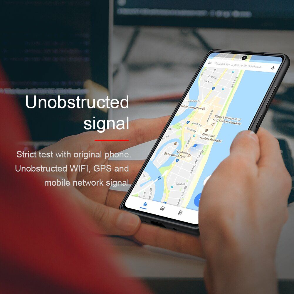 Чохол NILLKIN Texture Hybrid Case виготовлений точно за формою і розмірами корпусу Samsung Galaxy Note 20 (N980), щільно на ньому фіксується і відмінно оберігає від бруду та пошкоджень. Його конструкція складається з двох частин: міцної пластикової основи та еластичного силіконового бампера по периметру, що грає роль "амортизатора" і відмінно пом'якшить удар у випадку падіння на підлогу. Поверхня має приємну на дотик шорстку фактуру, що не зберігає на собі відбитки пальців і не ковзає в руках.