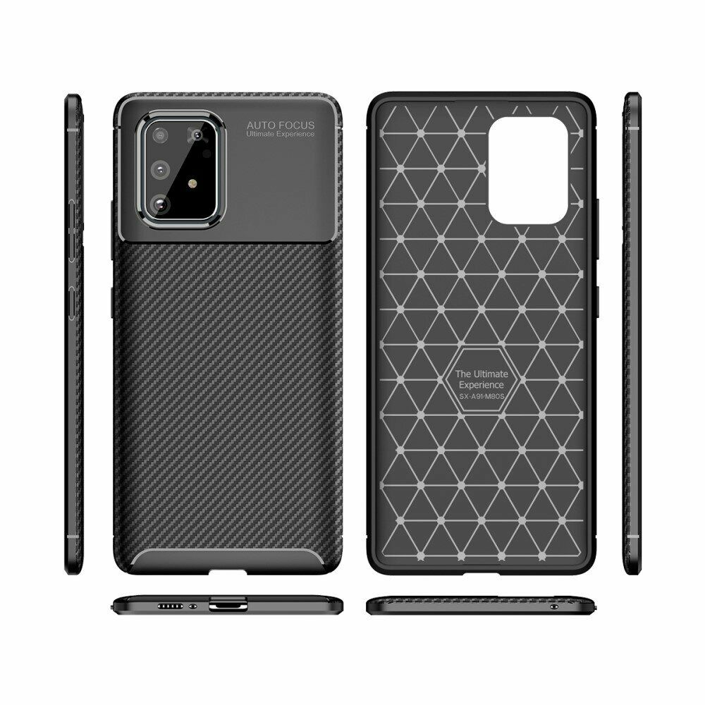 Чохол-накладка Deexe Fusion - це відмінне поєднання високих захисних характеристик, стильного дизайну і доступної ціни. Він виготовлений точно за формою і розмірами корпусу Samsung Galaxy S10 Lite (G770), щільно на ньому фіксується і стане гарантією збереження поверхонь в процесі щоденного використання. Основним матеріалом тут виступає щільний силікон (TPU), хороші амортизаційні якості якого дозволяють істотно пом'якшувати силу удару в разі падіння на підлогу, мінімізуючи пошкодження. Зовнішня поверхня має ефектну карбонову фактуру, що не тільки стильно виглядає, але й приємна на дотик і не зберігає на собі відбитки.