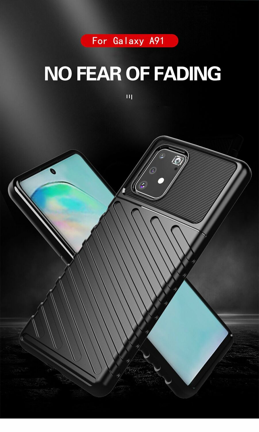 Чохол-накладка Deexe Thunder Series грамотно поєднує в собі компактні розміри, стильний сучасний дизайн і відмінні захисні властивості. Основним матеріалом тут виступає щільний термополіуретан (TPU), що довго не втрачає свій первозданний вигляд та здатний добре пом'якшити удар при падінні з висоти, оберігаючи корпус Samsung Galaxy S10 Lite (G770) не тільки від подряпин, але й від тріщин. Чохол має спеціальну форму і рифлену фактуру поверхні, які не тільки додають оригінальності його зовнішньому вигляду, але й покращують хват в долоні. В конструкції передбачені необхідні отвори для камери та портів, клавіші ж прикриваються м'якими, чутливими до натиснення дублікаторами, тому використовувати смартфон буде так само зручно, як і раніше.