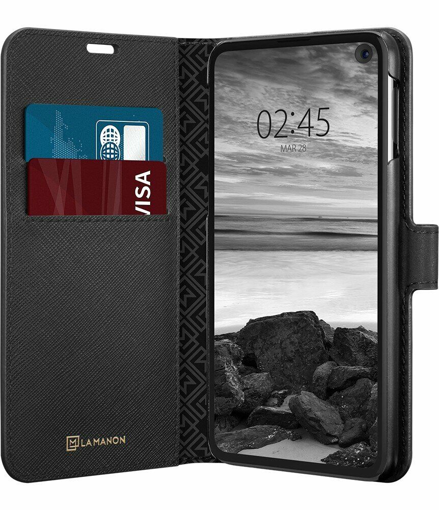 Пластиковый чехол Spigen (SGP) La Manon Wallet Saffiano для Samsung Galaxy S10e (G970) - Black