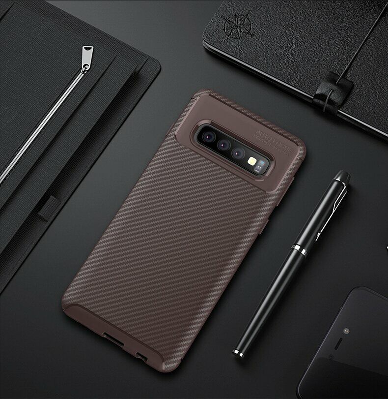Чохол-накладка Deexe Fusion - це відмінне поєднання високих захисних характеристик, стильного дизайну і доступної ціни. Він виготовлений точно за формою і розмірами корпусу Samsung Galaxy S10 Plus (G975), щільно на ньому фіксується і стане гарантією збереження поверхонь в процесі щоденного використання. Основним матеріалом тут виступає щільний силікон (TPU), хороші амортизаційні якості якого дозволяють істотно пом'якшувати силу удару в разі падіння на підлогу, мінімізуючи пошкодження. Зовнішня поверхня має ефектну карбонову фактуру, що не тільки стильно виглядає, але й приємна на дотик і не зберігає на собі відбитки.