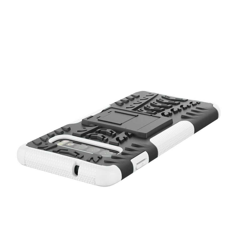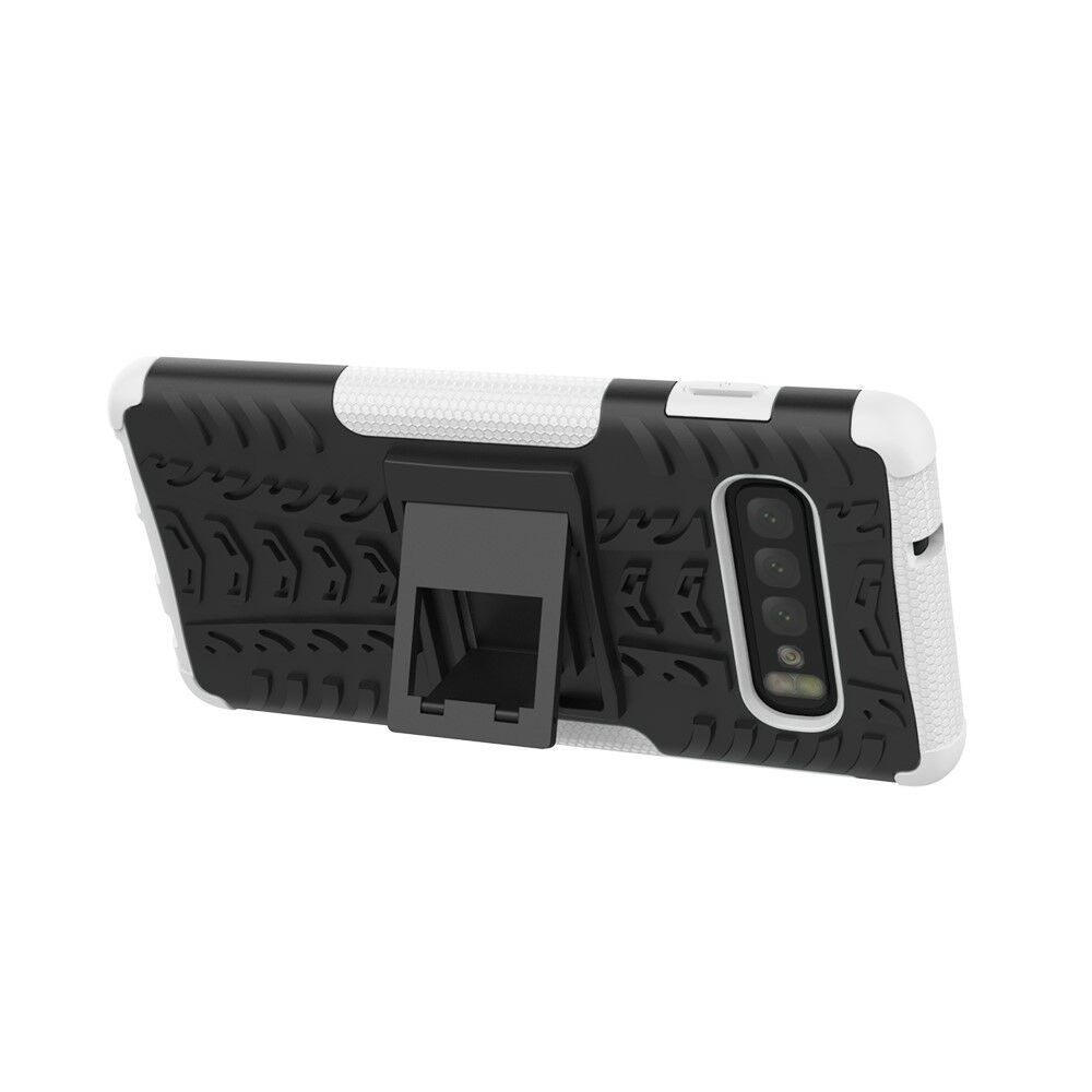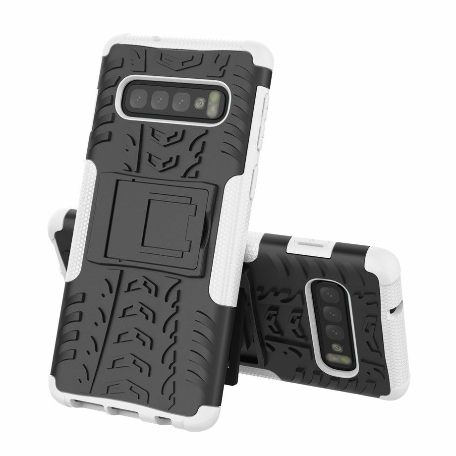 UniCase Hybrid X - це один з найнадійніших аксесуарів для Samsung Galaxy S10 Plus. Чохол складається з 2-х компонентів: щільної силіконової (TPU) накладки і міцного полікарбонатного панцира навколо неї. Завдяки такій конструкції, корпусу смартфона гарантується практично повна безпека при падіннях і сильних ударах. Зовнішня поверхня має спеціальну рифлену фактуру, яка не збирає на собі відбитки і покращує хват у руці. Виробник передбачив всі необхідні отвори для доступу до портів і камери смартфона, а також м'які пилозахисні дублікатори для клавіш. Також на спинці є невелика ніжка, відкинувши яку, чохол можна перетворити в зручну підставку, що полегшує перегляд відео і читання з екрану.