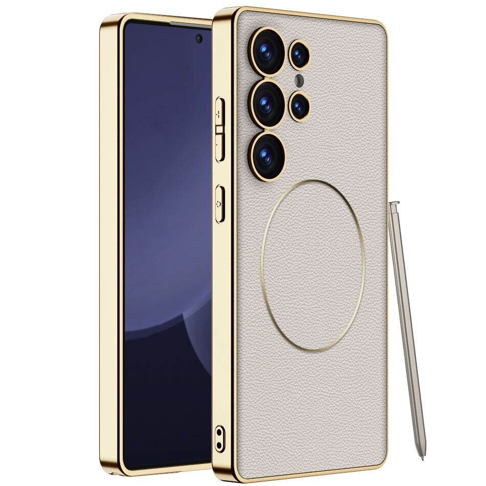 Чохол GKK Electro Armor розроблений для Samsung Galaxy S24 Ultra (S928) і поєднує міцну конструкцію з тонким, акуратним дизайном. Багатошарова структура об'єднує верхній шар зі штучної шкіри (PU), що надає пристрою акуратний зовнішній вигляд і стійкість до появи відбитків, жорсткий пластиковий каркас (PC), що забезпечує форму і захист, а також еластичні TPU-елементи на торцях для пом'якшення ударів. Металізоване покриття створює легкий дзеркальний блиск і підкреслює лінії смартфона, при цьому не обтяжуючи конструкцію. Вбудоване нікелеве магнітне кільце забезпечує точну фіксацію і сумісність з MagSafe, що дозволяє заряджати телефон без зняття аксесуара. Точна підгонка вирізів гарантує вільний доступ до всіх портів і кнопок, а злегка підняті бортики по периметру камери та дисплея зменшують ризик контакту з твердими поверхнями.