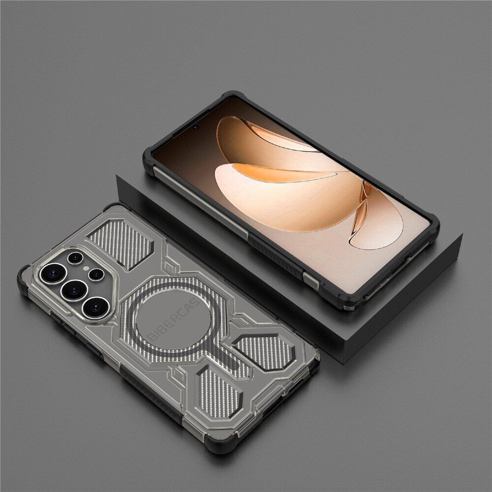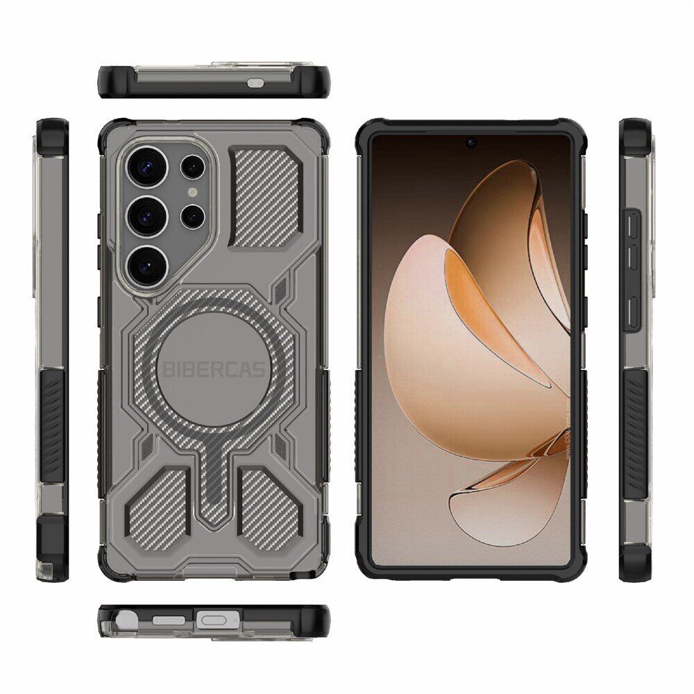 Чохол-накладка Deexe Clear Bibercas надійно захистить корпус Samsung Galaxy S25 Ultra (S938) як від бруду та дрібних подряпин, так і від більш серйозних пошкоджень, пом'якшуючи силу удару в разі падіння на підлогу. Особливість його конструкції полягає в поєднанні двох матеріалів різної жорсткості: твердого полікарбонатного панцира та еластичного силіконового (TPU) бампера по периметру, що дозволяє істотно поліпшити його амортизаційні характеристики. Виробником передбачені всі необхідні отвори для доступу до функціональних роз'ємів смартфона, тоді як клавіші будуть прикриті м'якими дублікаторами. Окремо слід відзначити наявність спеціальних магнітів, що впаяні в спинку та забезпечують підтримку технології MagSafe. У цьому чохлі ви не відчуєте ніяких проблем з підключенням до сумісних бездротових ЗУ, а зарядка залишиться такою ж ефективною, як і раніше.