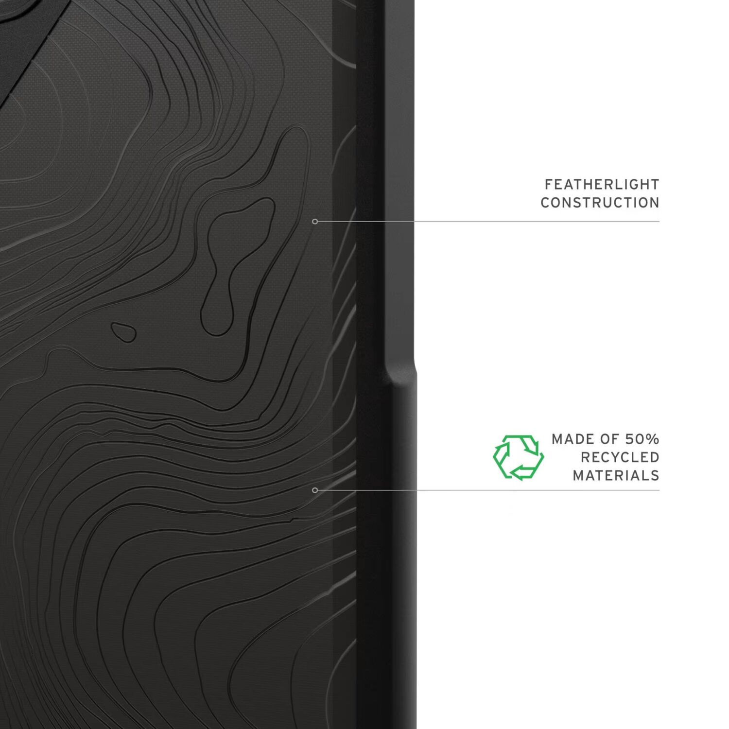 - Комбінована конструкція з полікарбонатної основи та еластичної TPU-рамки розрахована на збереження форми корпусу та більш рівномірний розподіл навантаження;