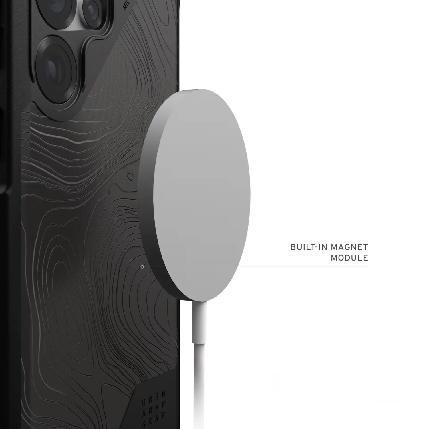 Захисний чохол URBAN ARMOR GEAR Metropolis LT Pro для Samsung Galaxy S25 Ultra (S938) розроблений з урахуванням конструктивних особливостей смартфона і не порушує його функціональність. Основа моделі виконана з жорсткого полікарбонату, який відповідає за збереження форми корпусу і стійкість до деформації. Еластична рамка з TPU доповнює конструкцію і бере участь у зниженні ударного навантаження при механічному впливі. Внутрішня частина оснащена фірмовою ударопоглинаючою структурою UAG, що розподіляє енергію контакту по поверхні корпусу. Зовнішнє оформлення витримано в стриманому стилі та не обтяжує візуально габарити пристрою. Конструкція точно повторює форму смартфона, виключаючи зазори та зміщення, а бічні клавіші закриті окремими накладками, що зберігають коректний хід і чутливість. Всі отвори під роз'єми, динаміки та мікрофони виконані з високою точністю. Вбудований магнітний модуль забезпечує сумісність з аксесуарами стандарту MagSafe без необхідності знімати аксесуар.
