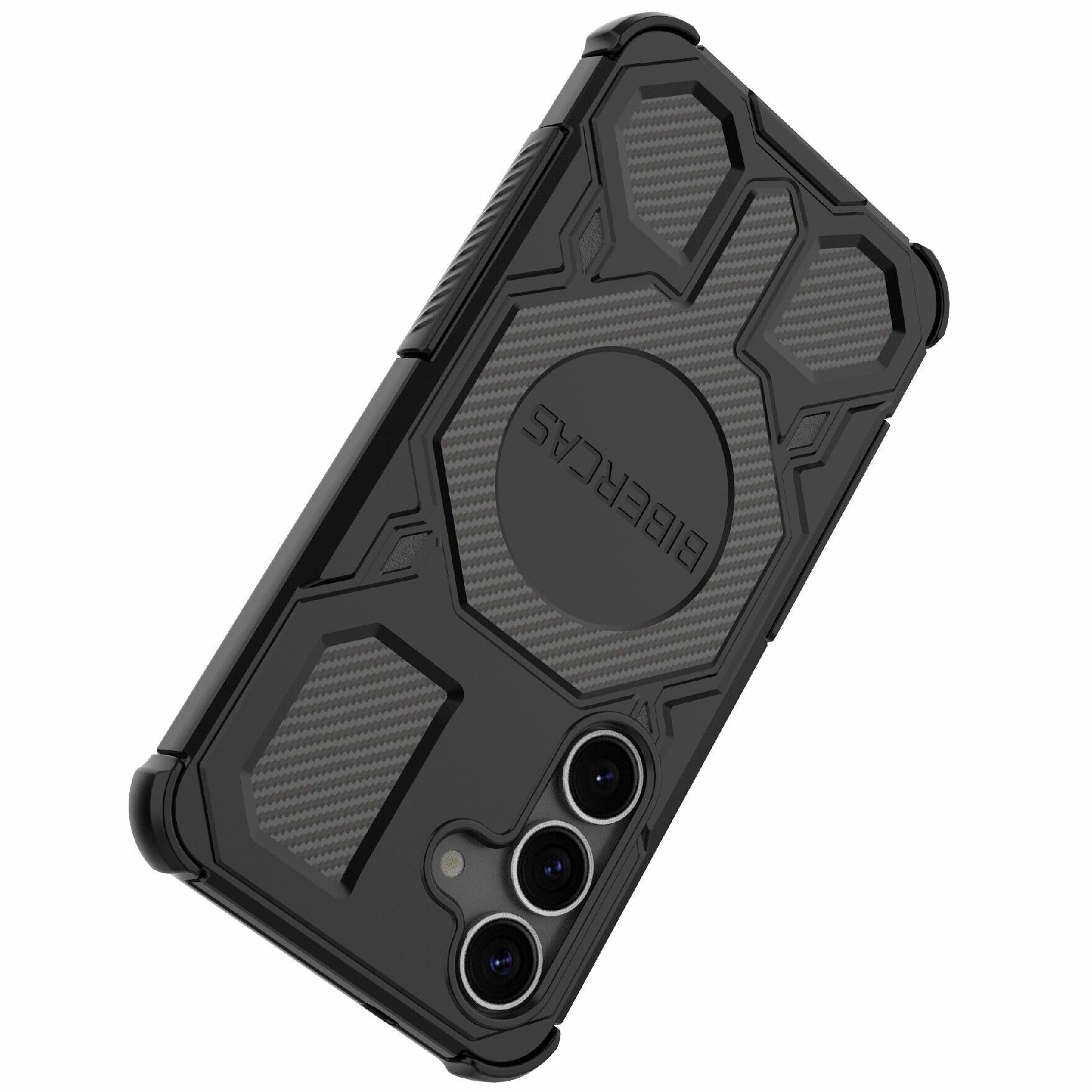 • Двокомпонентна конструкція з жорсткою задньою панеллю з полікарбонату та еластичними TPU-гранями поєднує міцність корпусу з амортизацією бічних ударів, знижуючи ризик пошкоджень при падіннях;