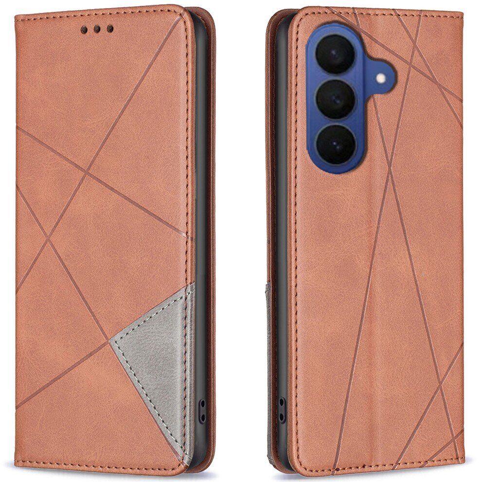 UniCase Geometric Pattern – це чохол-книжка, що поєднує функціональність, стильний дизайн і високий ступінь захисту для Samsung Galaxy S26 Plus. Зовнішня обкладинка з синтетичної шкіри прикрашена геометричним візерунком і декоративним рядком, що надає аксесуару преміального вигляду. Внутрішня TPU-основа надійно фіксує смартфон, захищаючи його від ударів і подряпин. У конструкції передбачені зручні кишеньки для зберігання пластикових карт, банкнот і дрібних предметів. Гнучка кришка легко трансформується в підставку, роблячи перегляд контенту і читання ще комфортнішими. Завдяки щільному приляганню і якісним матеріалам, чохол забезпечує надійний захист смартфона без зайвого обтяження.