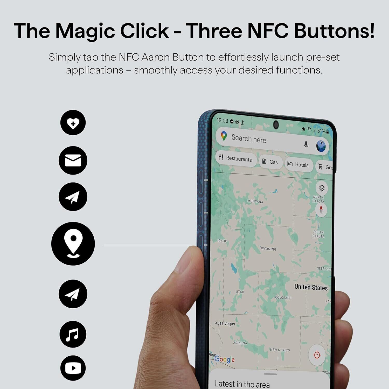 Вбудований магнітний модуль забезпечує сумісність з магнітними аксесуарами та бездротовою зарядкою. Додатково передбачені NFC-кнопки (Aaron Button), які можна використовувати для швидкого запуску функцій та додатків.