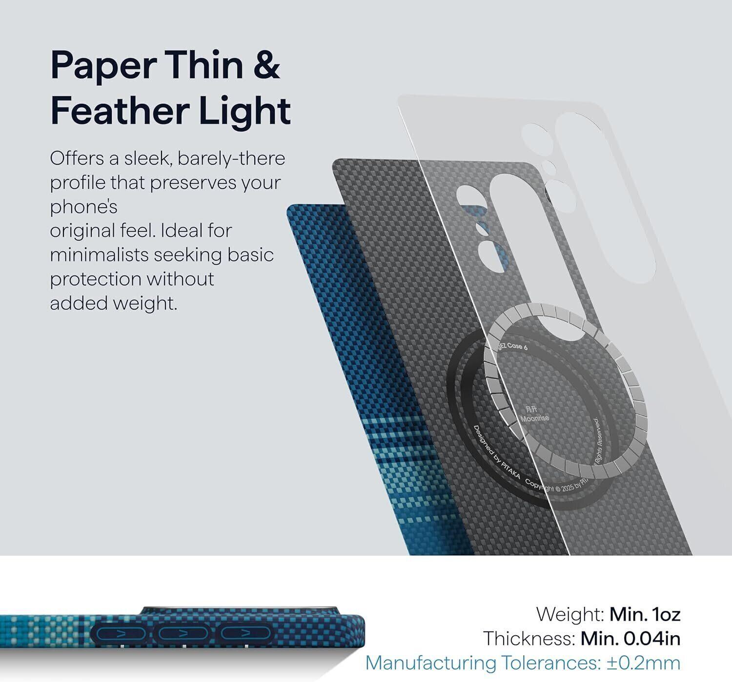 Ультратонкий чохол Pitaka Edge Case для Samsung Galaxy S26 Plus (S947) — це преміальний аксесуар для тих, хто віддає перевагу мінімалізму та сучасним матеріалам без зайвого об’єму. Корпус виготовлений з арамідного волокна, яке відрізняється високою міцністю при невеликій вазі та допомагає захистити смартфон від подряпин, потертостей і повсякденних пошкоджень.