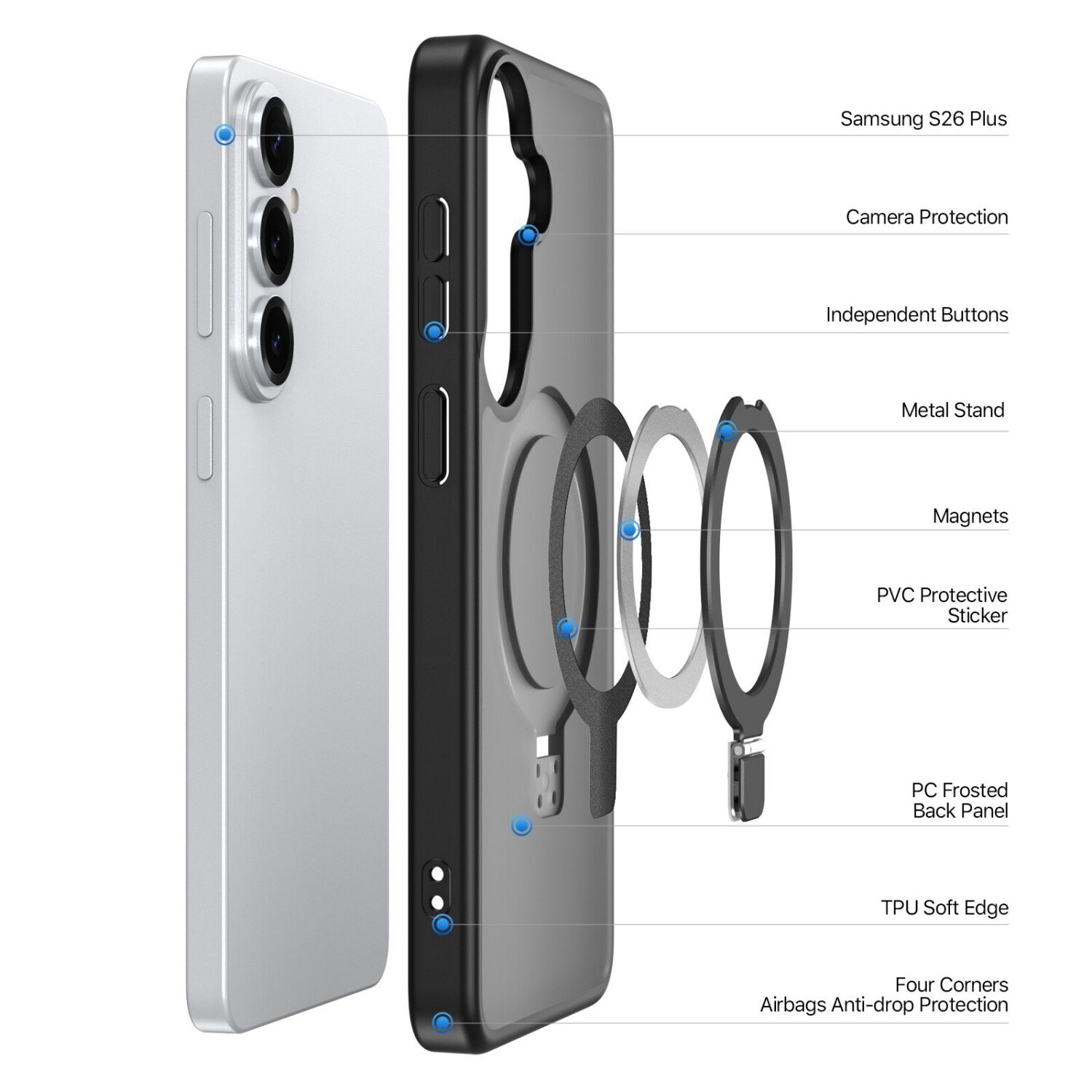 • Вбудовані 38 магнітів забезпечують сумісність з MagSafe, підтримуючи стабільну фіксацію і бездротову зарядку;