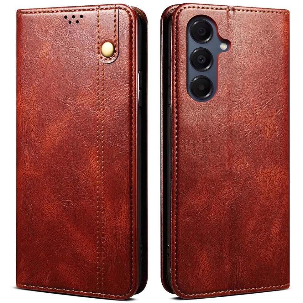 UniCase Leather Wallet – це елегантний чохол-книжка, який захистить Samsung Galaxy S26 Plus (S947) і додасть йому стильного вигляду. Зовнішня обкладинка зі штучної шкіри з текстурою "Crazy Horse" підкреслює преміальний дизайн, а силіконовий тримач щільно фіксує смартфон, знижуючи ризик пошкоджень під час ударів. Усередині передбачені кишені для карт і готівки, що робить чохол зручним у повсякденному використанні. Вбудований виріз під динамік дає змогу розмовляти, не відкриваючи кришку, а складна конструкція перетворює чохол на зручну підставку.