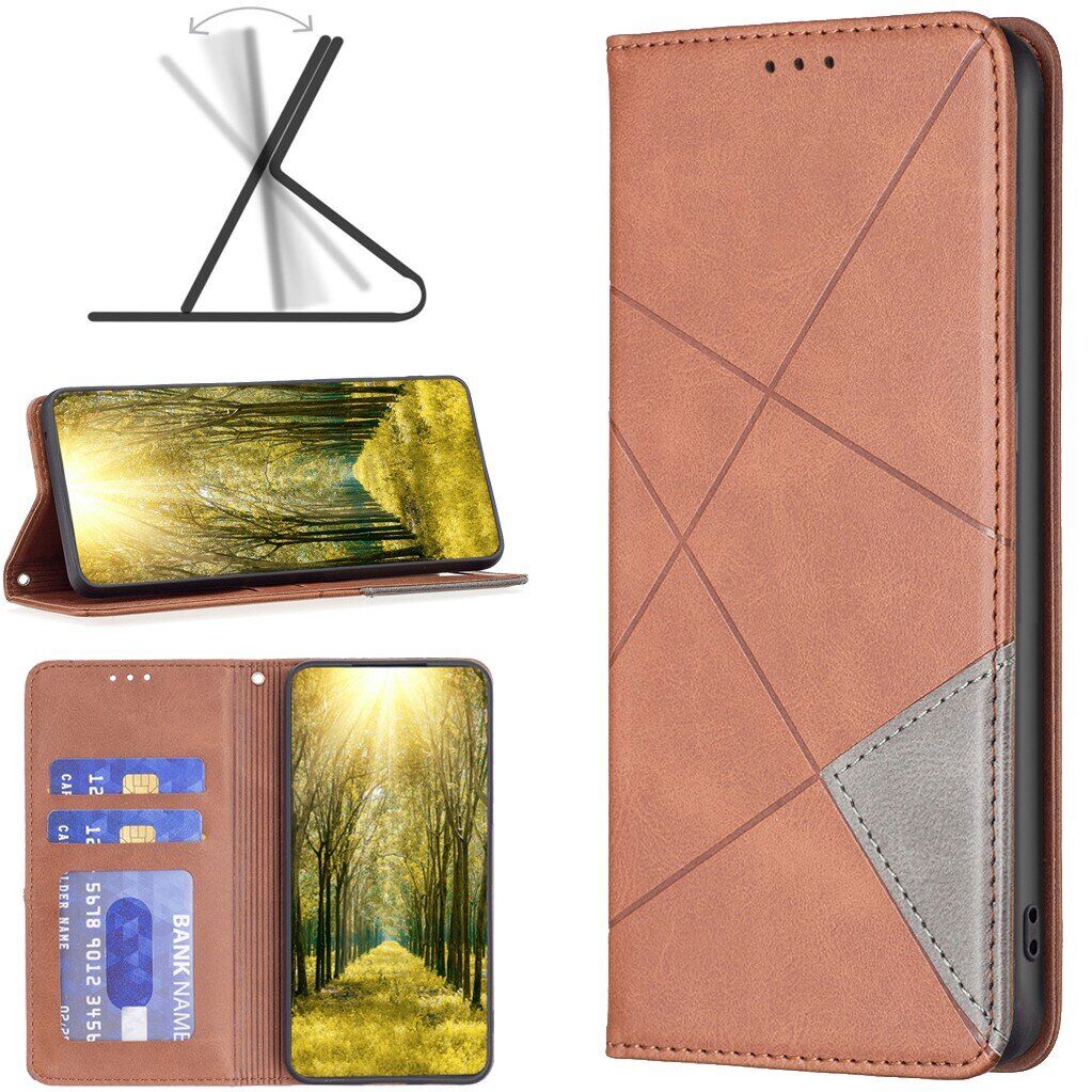 UniCase Geometric Pattern – це чохол-книжка для Samsung Galaxy S26 Ultra, що виконаний в елегантному дизайні та забезпечує повноцінний всебічний захист від бруду та пошкоджень. Конструкція складається зі щільної силіконової (TPU) основи та зовнішньої обкладинки із синтетичної шкіри. Акуратний геометричний візерунок з декоративним рядком задають тонку лінію стилю і відмінно виділяють смартфон серед інших. На внутрішній поверхні чохла розміщений ряд мініатюрних кишеньок, в які можна заховати пластикові карти, гроші та різного роду дрібниці. При необхідності верхню кришку можна скласти в стійку підставку для більш зручного перегляду відео або читання з екрану.