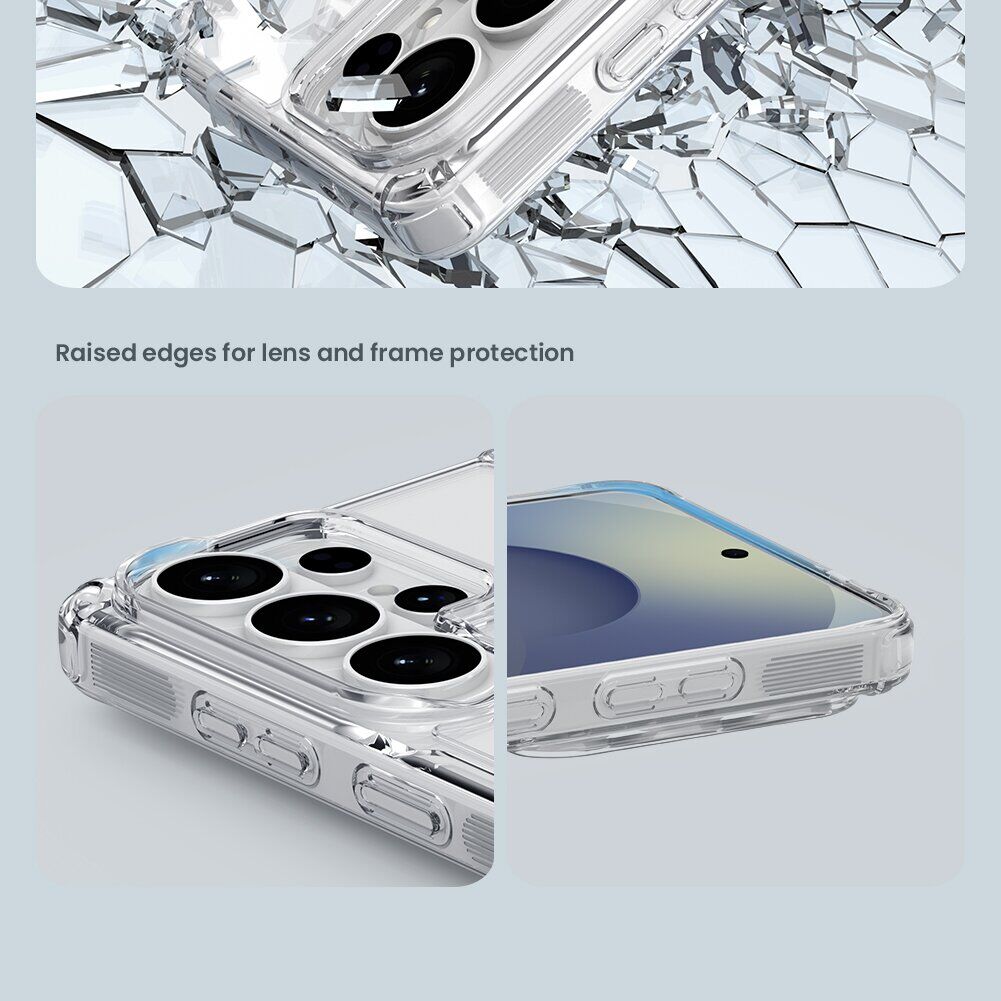 NILLKIN Nature TPU Pro – це міцний чохол, який забезпечить надійний захист Samsung Galaxy S26 Ultra не тільки від дрібних механічних пошкоджень, як-от подряпини та потертості, а й від серйозніших наслідків, включно зі сколами та тріщинами. Його двоскладова конструкція включає міцну пластикову спинку і еластичний силіконовий бампер, який амортизує удари і ефективно знижує ризик пошкоджень при падіннях. Додаткове посилення кутів за технологією "повітряної подушки" дає змогу чохлу витримувати навіть найнебезпечніші удари, як-от падіння на кут або ребро. Чохол ідеально підігнаний під форму пристрою, а точні вирізи під порти і камеру забезпечують вільний доступ до всіх функцій. Клавіші захищені м'якими пило- та вологозахисними дублікаторами, чутливими до натискання, що дає змогу зберегти зручність керування. Особливість аксесуара — виступаючі краї над рівнем екрана, що утворюють захисну кромку, яка запобігає контакту дисплея з поверхнею, дозволяючи безпечно класти смартфон екраном донизу.