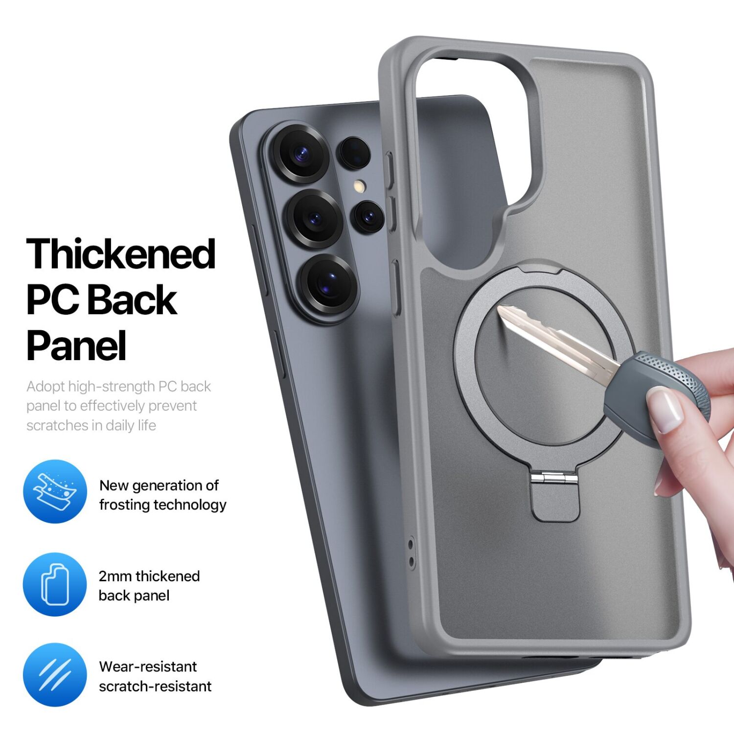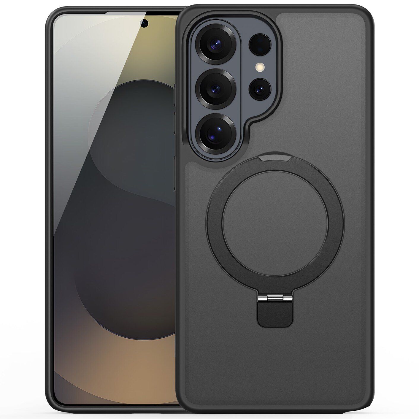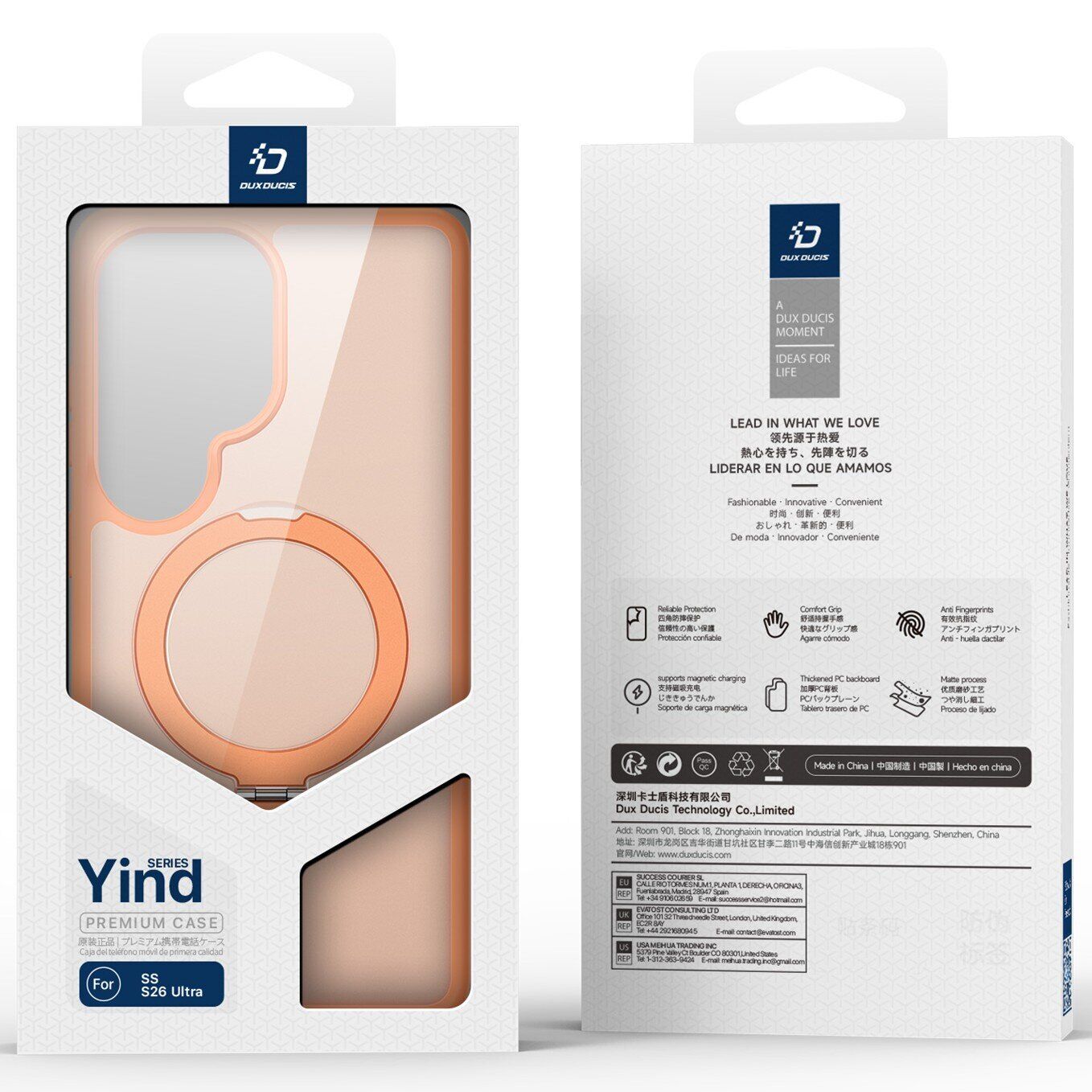 Чохол DUX DUCIS Yind Series Stand для Samsung Galaxy S26 Ultra розроблений для забезпечення зручності та захисту пристрою. М'які краї з TPU в поєднанні з матовою пластиковою спинкою створюють комфортне тактильне відчуття і надійний хват. Вбудовані 38 потужних магнітів забезпечують сумісність з MagSafe, що уможливлює використання бездротової зарядки без зняття аксесуара. Посилений корпус і амортизаційні елементи на кутах гарантують надійне протистояння ударам, зносу і випадковим падінням. Підняті краї запобігають пошкодженню екрана і камери, захищаючи їх від подряпин і ударів. Матеріали стійкі до відбитків пальців і слідів від поту, зберігаючи акуратний зовнішній вигляд. Чохол оснащений 360-градусною підставкою, яка дає змогу зручно дивитися відео або спілкуватися відеозв'язком як у портретній, так і в ландшафтній орієнтації.