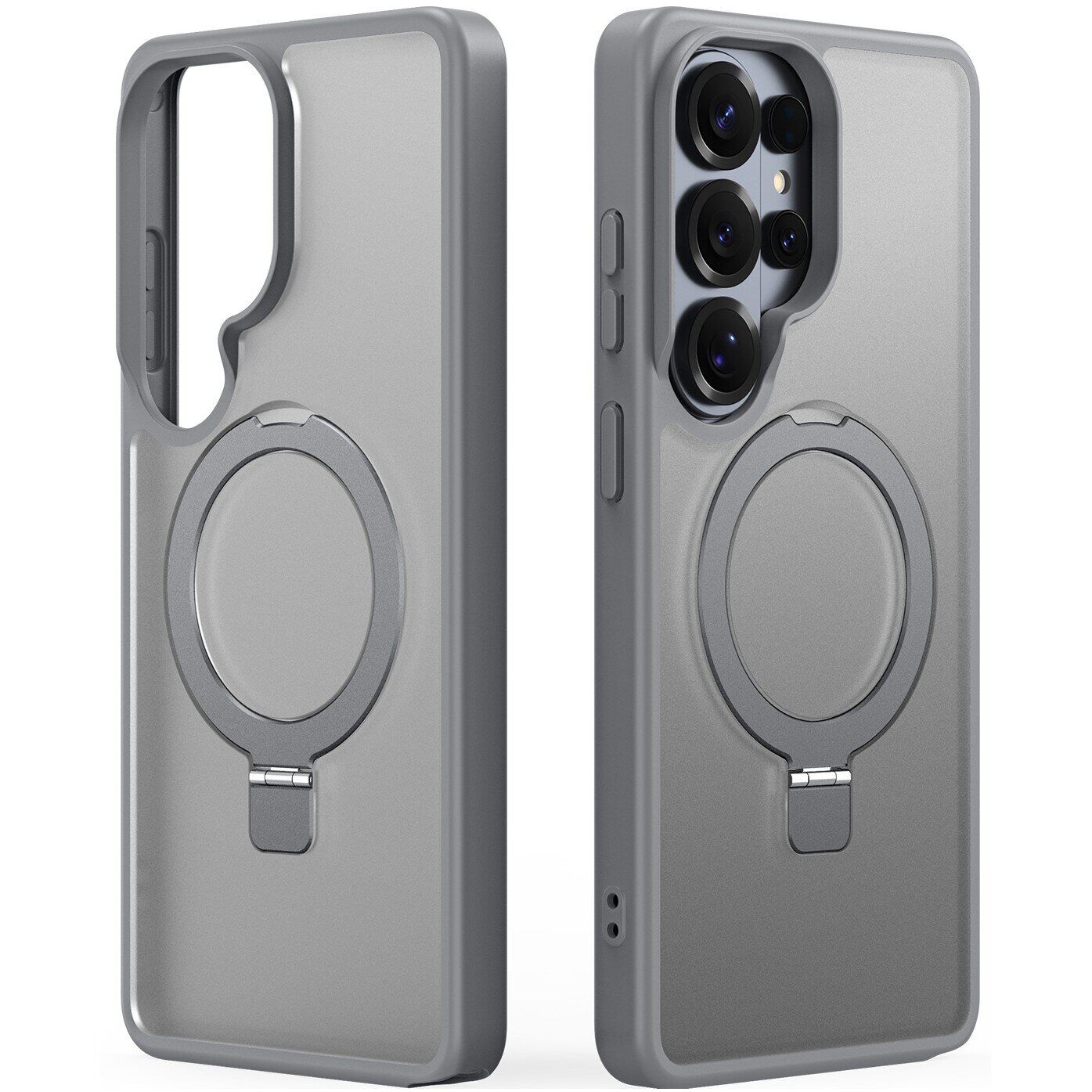 Чохол DUX DUCIS Yind Series Stand для Samsung Galaxy S26 Ultra розроблений для забезпечення зручності та захисту пристрою. М'які краї з TPU в поєднанні з матовою пластиковою спинкою створюють комфортне тактильне відчуття і надійний хват. Вбудовані 38 потужних магнітів забезпечують сумісність з MagSafe, що уможливлює використання бездротової зарядки без зняття аксесуара. Посилений корпус і амортизаційні елементи на кутах гарантують надійне протистояння ударам, зносу і випадковим падінням. Підняті краї запобігають пошкодженню екрана і камери, захищаючи їх від подряпин і ударів. Матеріали стійкі до відбитків пальців і слідів від поту, зберігаючи акуратний зовнішній вигляд. Чохол оснащений 360-градусною підставкою, яка дає змогу зручно дивитися відео або спілкуватися відеозв'язком як у портретній, так і в ландшафтній орієнтації.