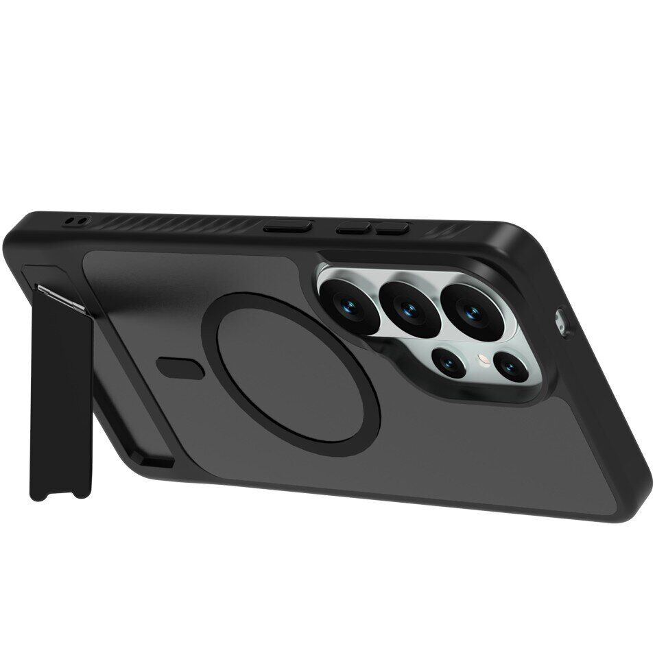Захисний чохол LEREACH Le-Chic Series розроблений для тих власників Samsung Galaxy S26 Ultra, котрим важливі як надійність, так і функціональні можливості. Задня панель із міцного полікарбонату ефективно запобігає механічним пошкодженням корпусу, а гнучкі краї з термопластичного поліуретану (TPU) пом'якшують удари, захищаючи кути пристрою від пошкоджень при падіннях. Вбудоване магнітне кільце підтримує роботу з аксесуарами MagSafe – це дозволяє не тільки використовувати бездротову зарядку, але й надійно фіксувати смартфон в магнітних автомобільних тримачах. На спинці розміщена відкидна металева підставка, котра забезпечить додаткову зручність при перегляді фільмів або відеодзвінках, звільняючи руки. Текстуровані боковини забезпечують надійний хват і допомагають уникнути випадкового вислизання пристрою. Крім того, передбачено вбудований отвір для кріплення ремінця, що може бути корисним в поїздках або при активному використанні (ремінець не входить в комплект). Злегка підняті краї по периметру екрану і камери мінімізують ризик подряпин і потертостей при щоденній експлуатації.