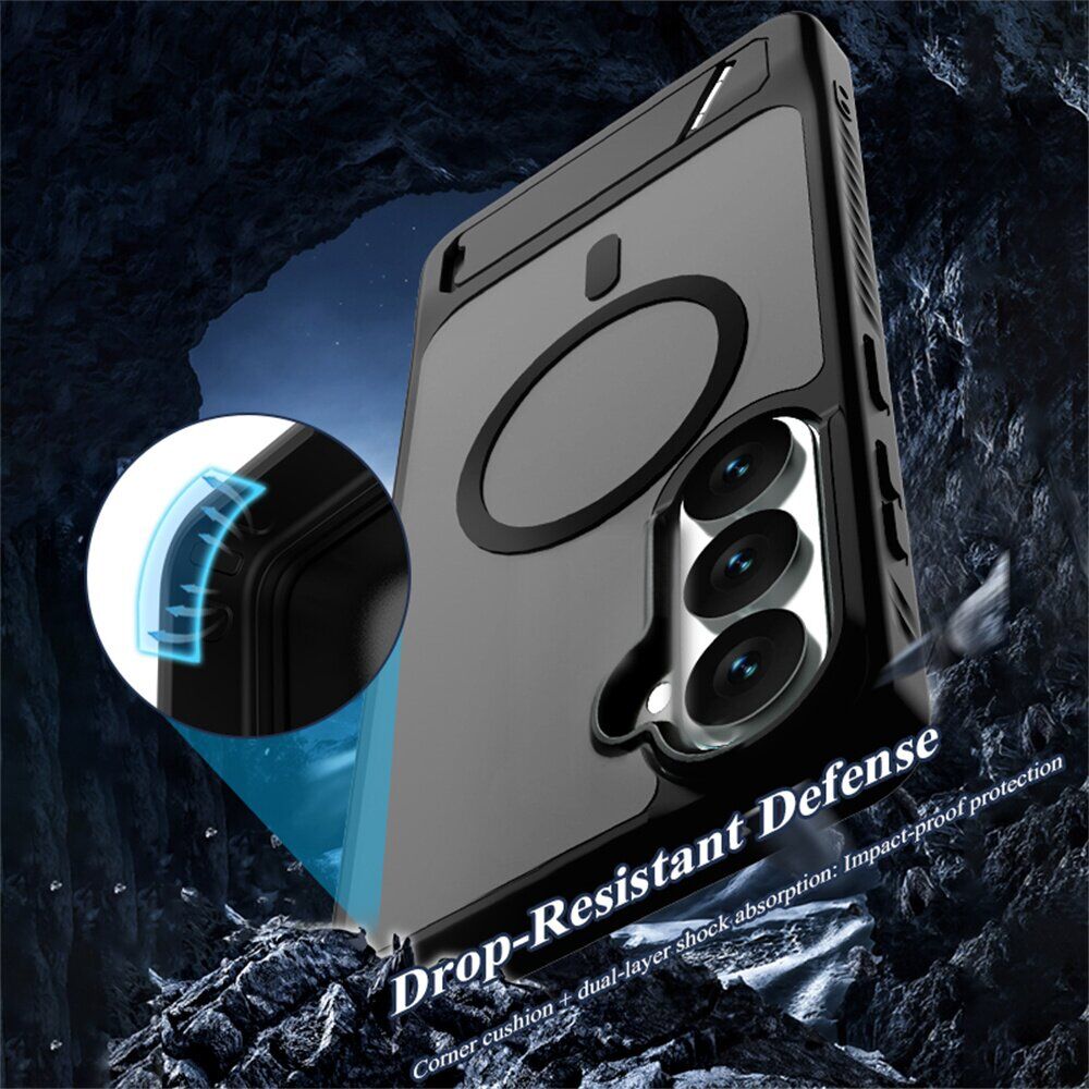 Захисний чохол LEREACH Le-Chic Series розроблений для тих власників Samsung Galaxy S26, котрим важливі як надійність, так і функціональні можливості. Задня панель із міцного полікарбонату ефективно запобігає механічним пошкодженням корпусу, а гнучкі краї з термопластичного поліуретану (TPU) пом'якшують удари, захищаючи кути пристрою від пошкоджень при падіннях. Вбудоване магнітне кільце підтримує роботу з аксесуарами MagSafe – це дозволяє не тільки використовувати бездротову зарядку, але й надійно фіксувати смартфон в магнітних автомобільних тримачах. На спинці розміщена відкидна металева підставка, котра забезпечить додаткову зручність при перегляді фільмів або відеодзвінках, звільняючи руки. Текстуровані боковини забезпечують надійний хват і допомагають уникнути випадкового вислизання пристрою. Крім того, передбачено вбудований отвір для кріплення ремінця, що може бути корисним в поїздках або при активному використанні (ремінець не входить в комплект). Злегка підняті краї по периметру екрану і камери мінімізують ризик подряпин і потертостей при щоденній експлуатації.