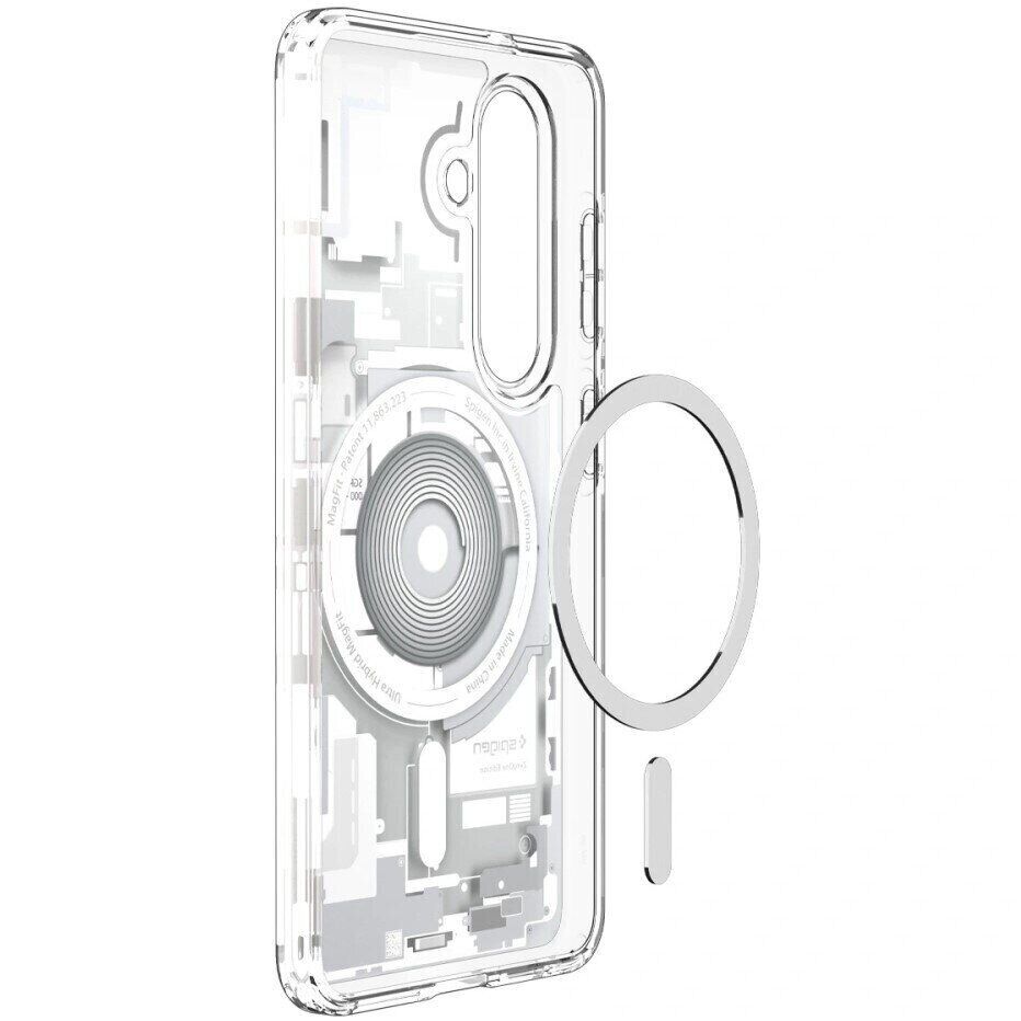 Spigen (SGP) Ultra Hybrid Zero One (MagFit) – це унікальне поєднання дизайну та якості, створене спеціально для Samsung Galaxy S26 (S942). Дизайн чохла імітує внутрішні компоненти пристрою, що надає йому унікального та інноваційного вигляду. Незважаючи на свою мінімальну товщину, яка практично не змінює габарити вашого смартфона, цей чохол забезпечує надійний захист завдяки "повітряним подушкам", розташованим по кутах. Акуратні вирізи забезпечують легкий доступ до всіх функцій пристрою. Матеріали, що використовуються у виготовленні – силікон (TPU) та полікарбонат (PC) – гарантують довговічність та надійний захист смартфона. Вбудоване в спинку чохла магнітне кільце забезпечує повну сумісність із технологією MagSafe, підтримуючи бездротову зарядку.