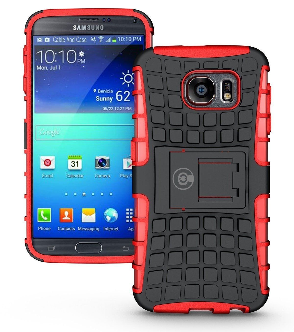 UniCase Hybrid X - це один з найнадійніших аксесуарів для Samsung Galaxy S6 (G920). Чохол складається з 2-х компонентів: щільної силіконової (TPU) накладки і міцного полікарбонатного панцира навколо неї. Завдяки такій конструкції, корпусу смартфона гарантується практично повна безпека при падіннях і сильних ударах. Зовнішня поверхня має спеціальну рифлену фактуру, яка не збирає на собі відбитки і покращує хват у руці. Виробник передбачив всі необхідні отвори для доступу до портів і камери смартфона, а також м'які пилозахисні дублікатори для клавіш. Також на спинці є невелика ніжка, відкинувши яку, чохол можна перетворити в зручну підставку, що полегшує перегляд відео і читання з екрану.